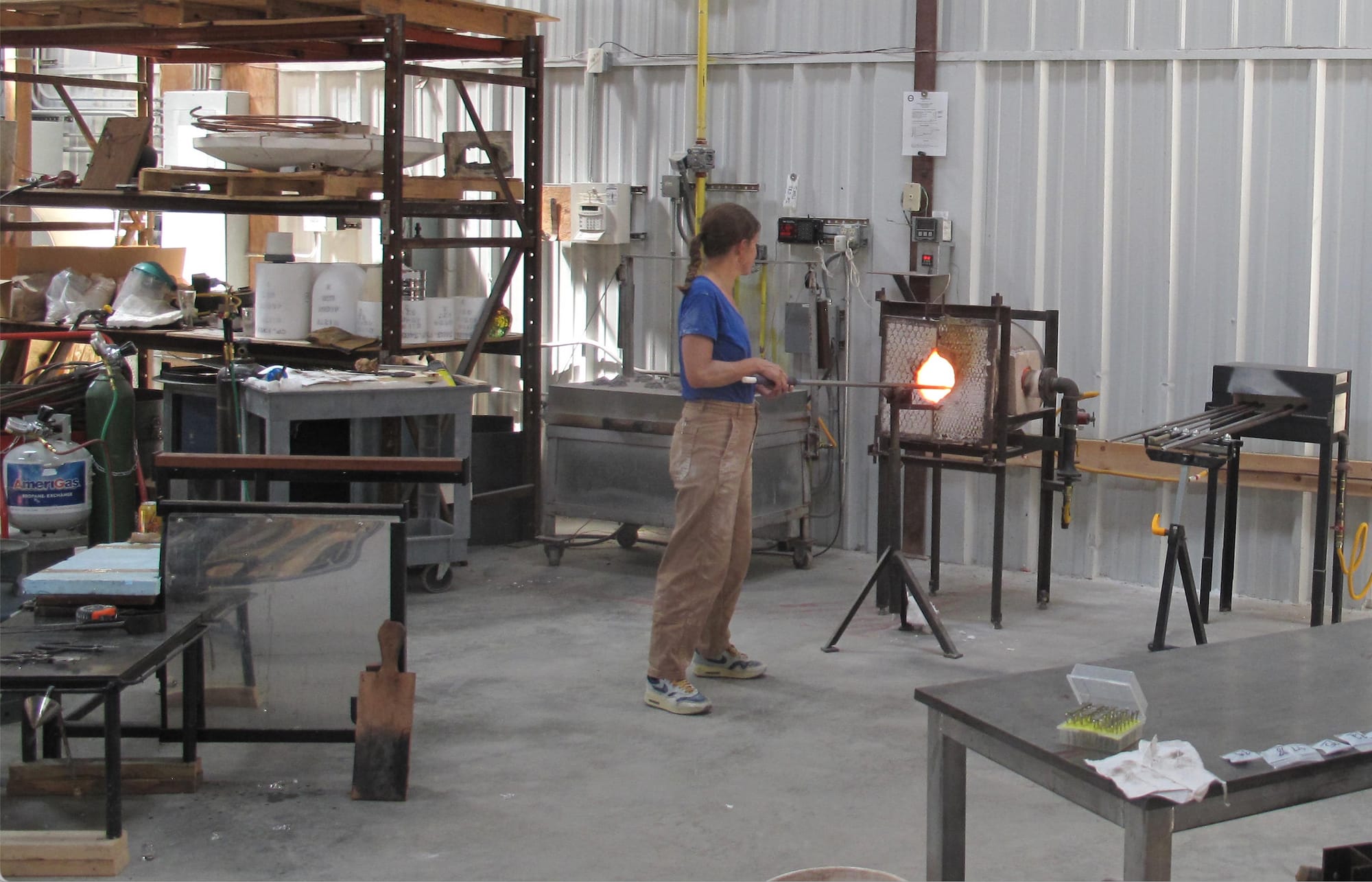 SPRUCE PINE, N. C. — The mountain, pulverized, ran through my fingers. Mixed with trickling drops of water in the rotating drum, it balled into a crumbled pastry dough. In Spruce Pine, North Carolina, glass batch — that mix of dry ingredients destined to be heated and melted in a glassblower’s furnace — has been produced since 1986. Glass batch was not the hot glass I had learned to manipulate as an ethnographer writing about contemporary studio glassblowing in the mid-2000s but the minerals of its making. From July 2023 to this past August, I conducted six weeks of fieldwork in North Carolina’s Mitchell and Yancey Counties, working at the Spruce Pine Batch Company’s factory, visiting local mines, and delving into county archives. The company, a notable supplier of glass batch to independent and institutional glass studios across the United States, closed on September 27 for what was expected to be a bad storm. Hurricane Helene then poured over 24 inches (~62 cm) of rain on Spruce Pine in a single day. The factory and employees are safe, but a significant supply of glass batch was cut off for a month.