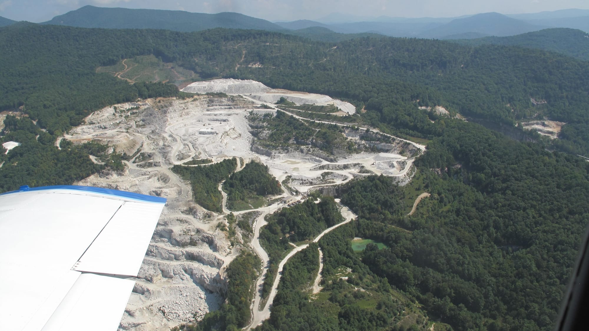 While I was flying over the Spruce Pine Mining District in August with mining geologist Alex Glover and local glassblower Greg Fidler, this geological interdependence was impossible to ignore. From my window seat, the mineral legacy of the district was deeply etched into quarried mountainsides, abandoned processing plants, and reclaimed mines where the land is now dense with forestation. It was Glover’s first bird’s-eye view of the mines in over a decade. “I could make the argument that this is the most important mine in the world,” he commented as we passed the conjoined Sibelco and Quartz Corporation mines below.