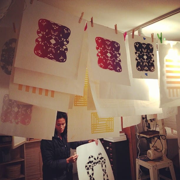 These volunteers were doing everything from scrubbing rusted metal sculptures (the building was flooded with toxic salt water from nearby Newtown Creek) to bleaching tools or hanging prints to dry (pictured below). It was an amazing scene to witness and be a part of. People coming together to save an artist’s body of work.