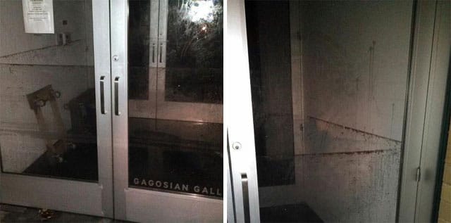 UPDATE 1: Artist Jomar Statkun sent us these photos of the front doors of Gagosian in Chelsea last night. The peak waterline is apparent in the images.