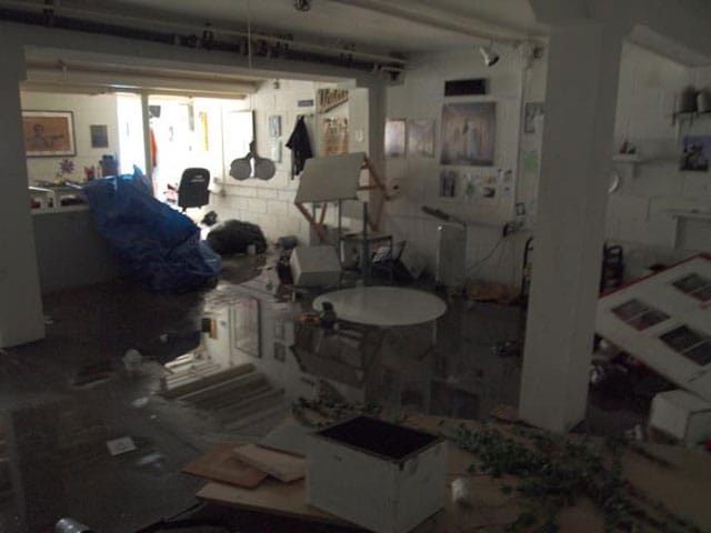 STUDIO DESTROYED! Hurricane Sandy took my studio apart. Of the 8ft of headroom, over 4.5ft of water was absorbed. Among the casualties are the 100 Story House, original artworks, thousands of dollars in equipment, materials and property.