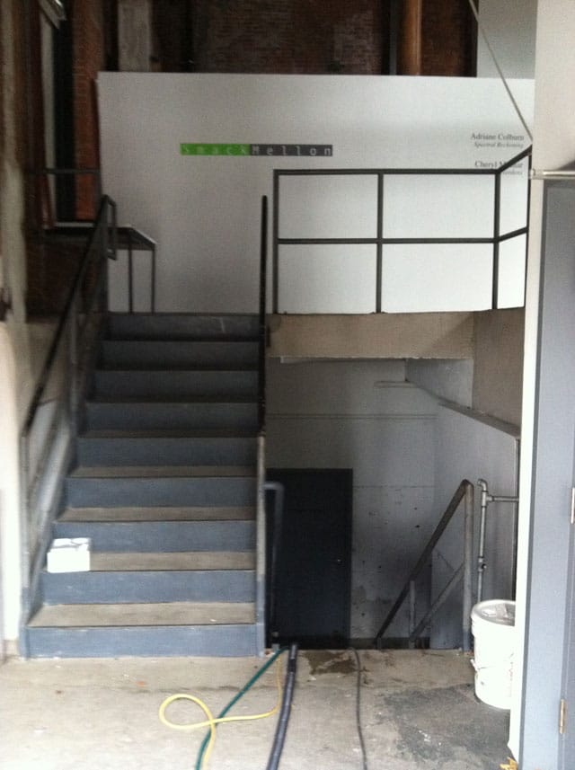 Just arrived at my gallery at 111 Front Street in Dumbo and everything seems to have weathered the storm ok. No galleries on my floor reporting any damage that I know of. The power at the 111 Front Street gallery building is off. Should be restored later today according to building management. Attached is a pic though of the entrance to SmackMellon down the street. Note the high water mark near the top of the door in the lower level. Pumps are going full blast in every building near the water in Dumbo.