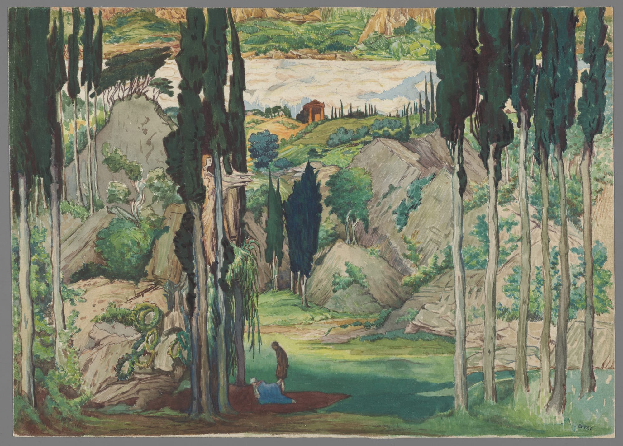 When Russian painter and designer Léon Bakst visited the archaeological museum in Olympia in 1907, his response to the Greek statues was visceral. “I want terribly to run my hand over the marble, to find out what Niobe’s shoulders are like,” he wrote in 1923. This reaction summarizes the way Bakst, a set and costume designer for the Ballets Russes, viewed ancient art of “The Orient,” which, to him, spanned from the far east to Ancient Greece.