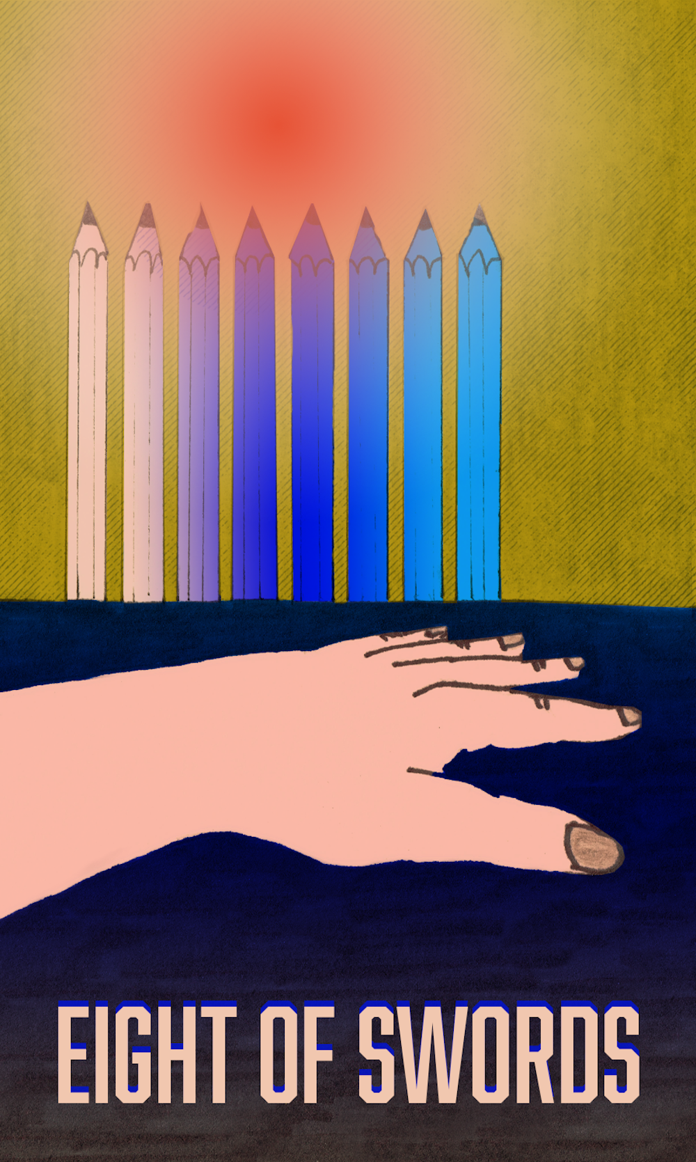 The hand laid flat by the pencils suggests stasis and rest. This season, the card seems to say that it may be worth making space for pause rather than immediately springing into action. Consider the tools around you and how you might best utilize them. But as an Air sign, you may already be accustomed to thinking through your options, to the point of inaction. Be mindful of the perspective you bring to your decision making such that you can move forward prudently, while ensuring that you continue to move forward.