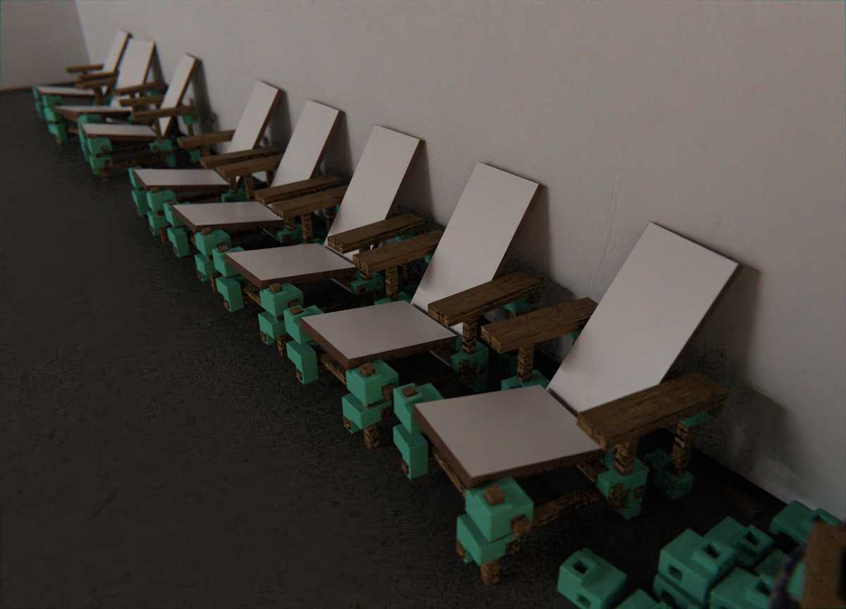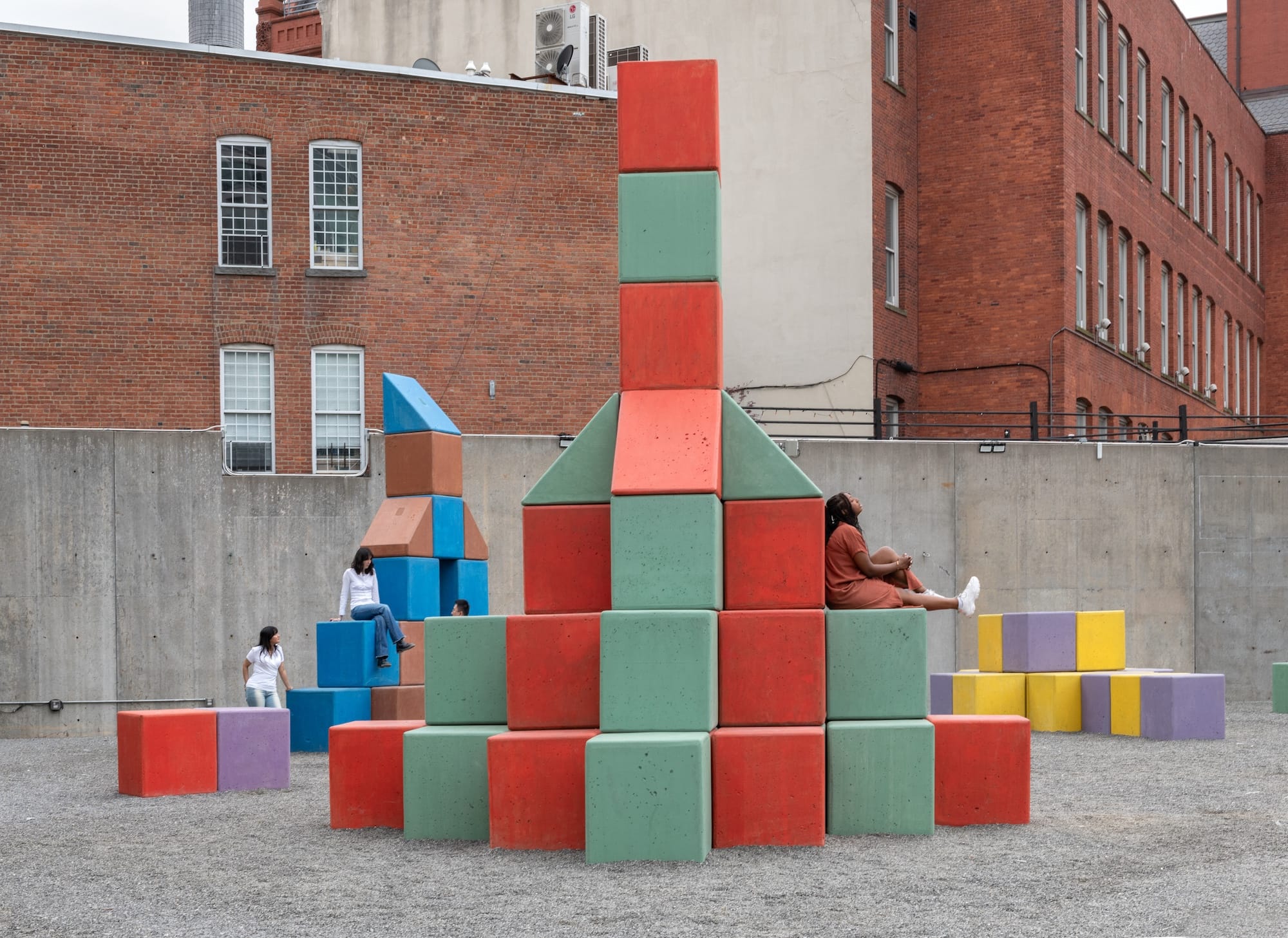 This interactive installation of stacked blocks is more than what meets the eye. Barrada’s multicolored concrete sculptures evoke traditional Moroccan acrobat troupes’ human pyramid formations and nod toward Brutalism in the country, exploring strength, durability, and experimentation through a postcolonial lens.