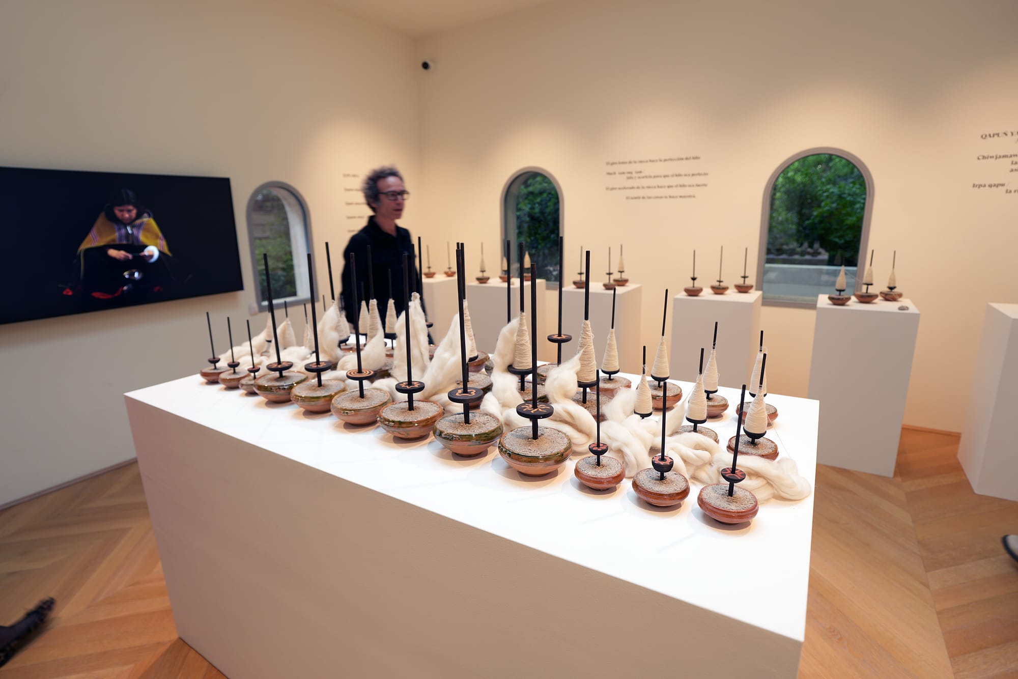 The installation title references the words of Hermano Puli, also known as Apolinario de la Cruz, who founded a confradía, or religious confraternity, for Indigenous groups facing discrimination from Spanish Catholics in the 19th century. Eventually executed by the Spanish colonial government, Puli advised fraternity members that “Victory [is] just behind the curtain of this age.” — AXM