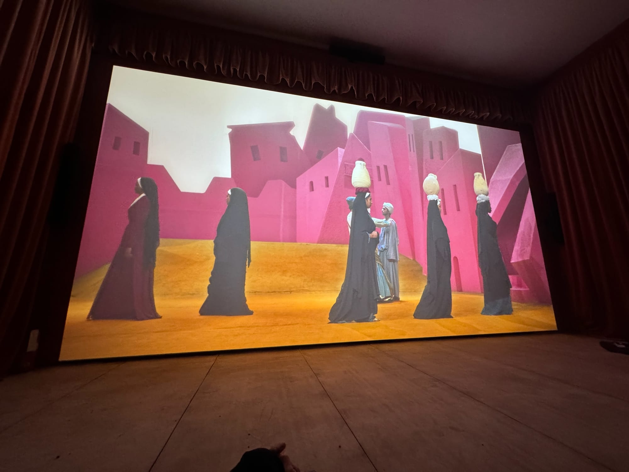 Wael Shawky is known for his retellings of history, whether the Crusades or, in this case, the Urabi revolution and the Battle of Tel El Kebir. In this project, which has been a Biennale favorite judging by all the people who told me about it and the long lines to get in, he creates an operatic narrative that looks at the recent colonial history of Egypt. While he has received a lot of praise for his attempts to reframe history in a way that counters Western narratives, I find that his work can often swerve towards stereotypes — and here the characters never go beyond types, which I don’t think does any favors for the larger story. It seems strange that, with the tragedy of a war raging at Egypt’s borders, Shawky decided to present this with no mention of Gaza, particularly since colonialism is often the focus of his work. The sculptural objects on display, opposite the video, feel less integral to the larger story being told and more connected to the art market’s thirst for luxury objects. — HV
