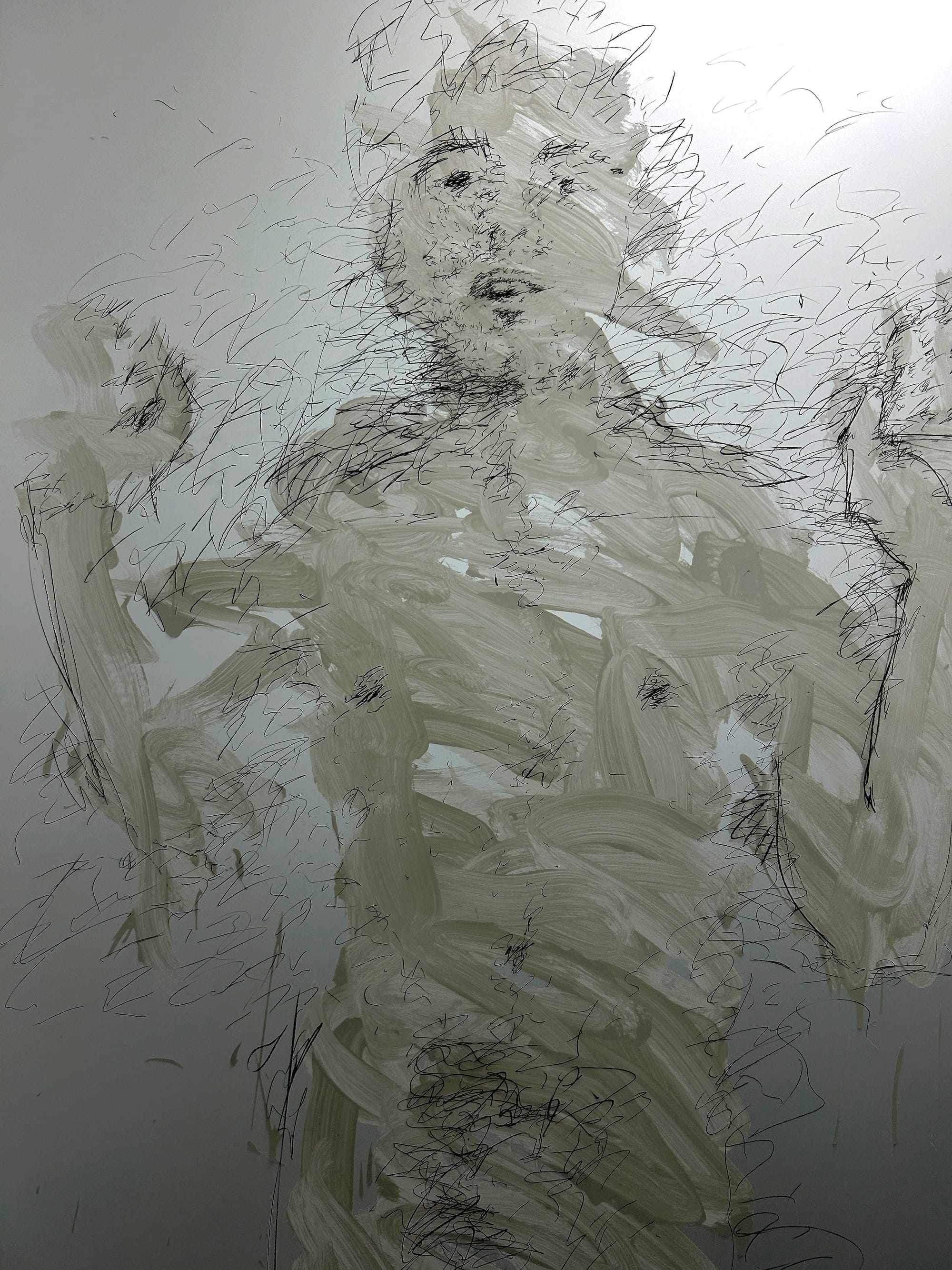 Rafaël Rozendaal’s small digital file commands a large audience at the Museum of Modern Art’s ground-floor lobby. An early fixture of web art, Rozendaal developed an autonomous website that algorithmically generates animations based on storyboard sketches he made on paper.