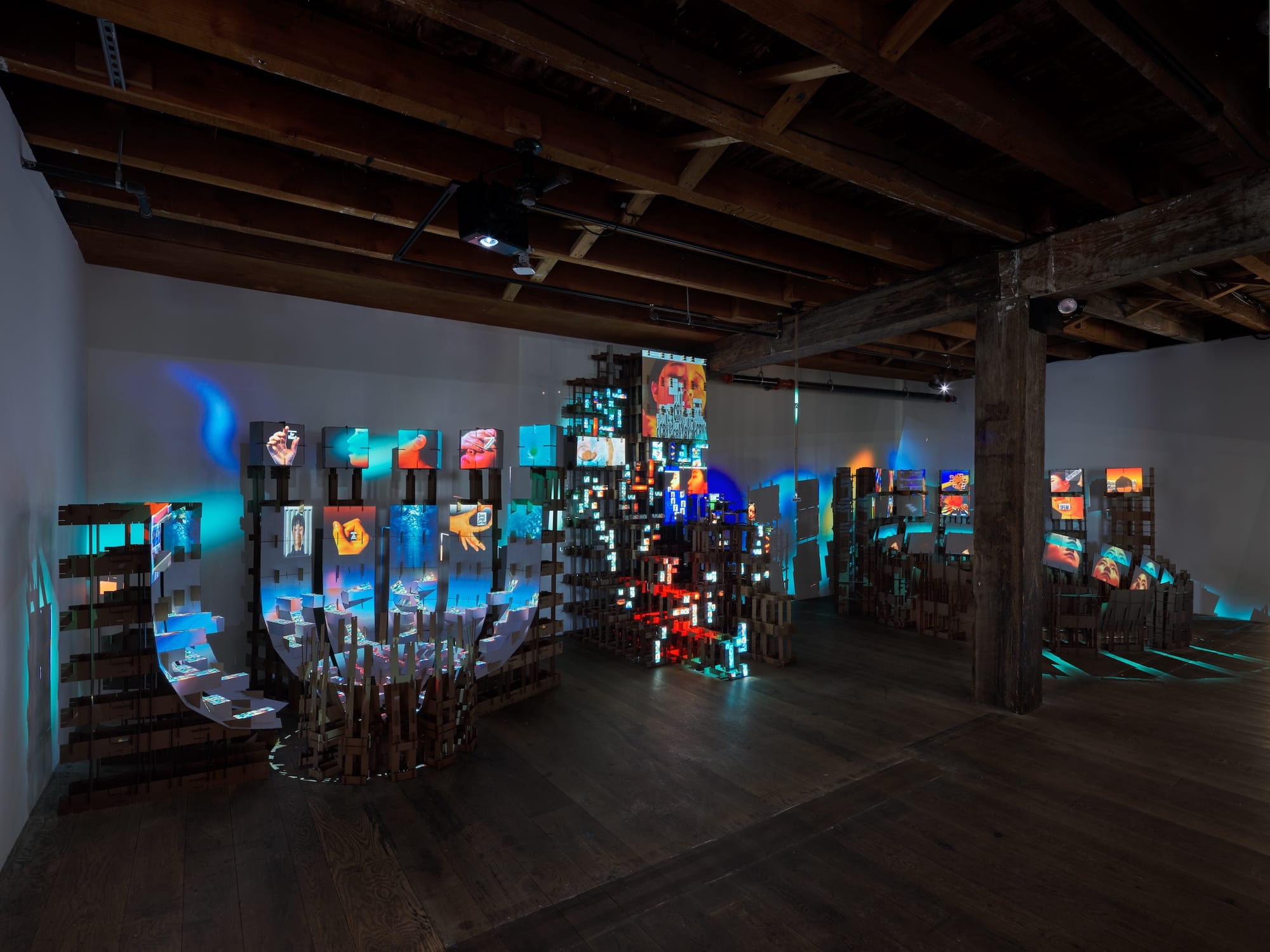 Anyone disenchanted with daily doomscrolling on the same five websites might find reprieve in Yehwan Song’s web-based practice. Rejecting hostile, anti-user website interfaces that employ algorithmic performances for corporate interests and surveillance technology, Song’s exhibition reinforces digital agency through projections, kinetic sculptures, and references to water and its influence on the foundational internet lexicon.