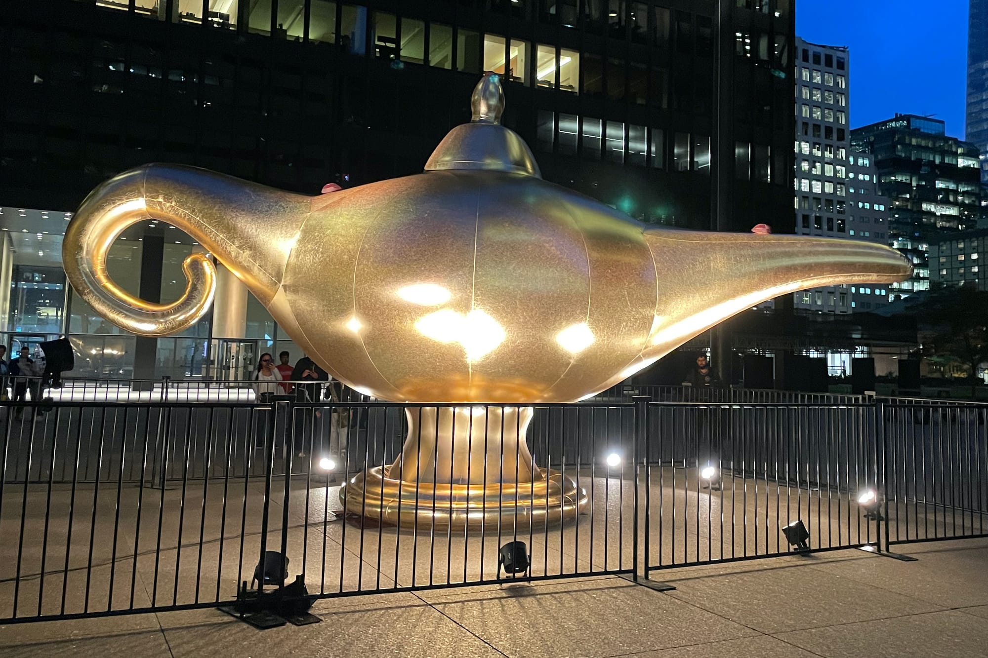 Divya Mehra, "Your Wish Is Your Command" (2023), 16 x 28 x 8 feet (photo Natalie Haddad/Hyperallergic)