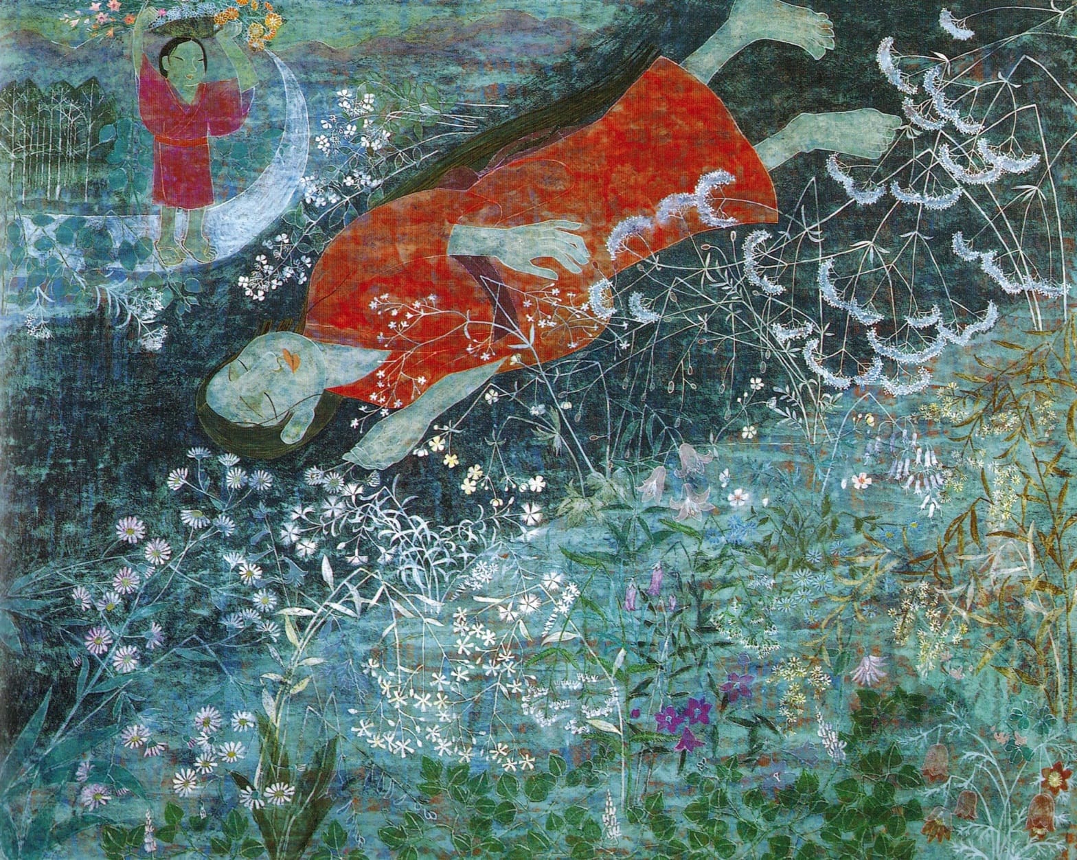 The world deserves to know about Setsuko Mitsuhashi. Earlier this year, I came upon Three Worlds Drawn by Setsuko Mitsuhashi at the artist’s memorial museum in Otsu, a small town outside of Kyoto, Japan. I was drawn in by the paucity of information about the artist online: I found a handful of jpegs in a Google image search but little else. Fascinated, I took the train to Otsu and climbed the forested hill where her museum stands. Mitsuhashi’s paintings began as delicate botanical studies, but soon they evolved into passionate accounts of the legends of nearby Lake Biwa. Her budding and brilliant art career was tragically cut short when she died of cancer in 1975 at the age of 35. Her story, which was tenderly retold to me by the museum’s director, Seiji Hiraishi, brought tears to my eyes. Mitsuhashi’s dedication to her art, her family, and to life has stayed with me, and will continue to do so for a very long time. —Lauren Moya Ford