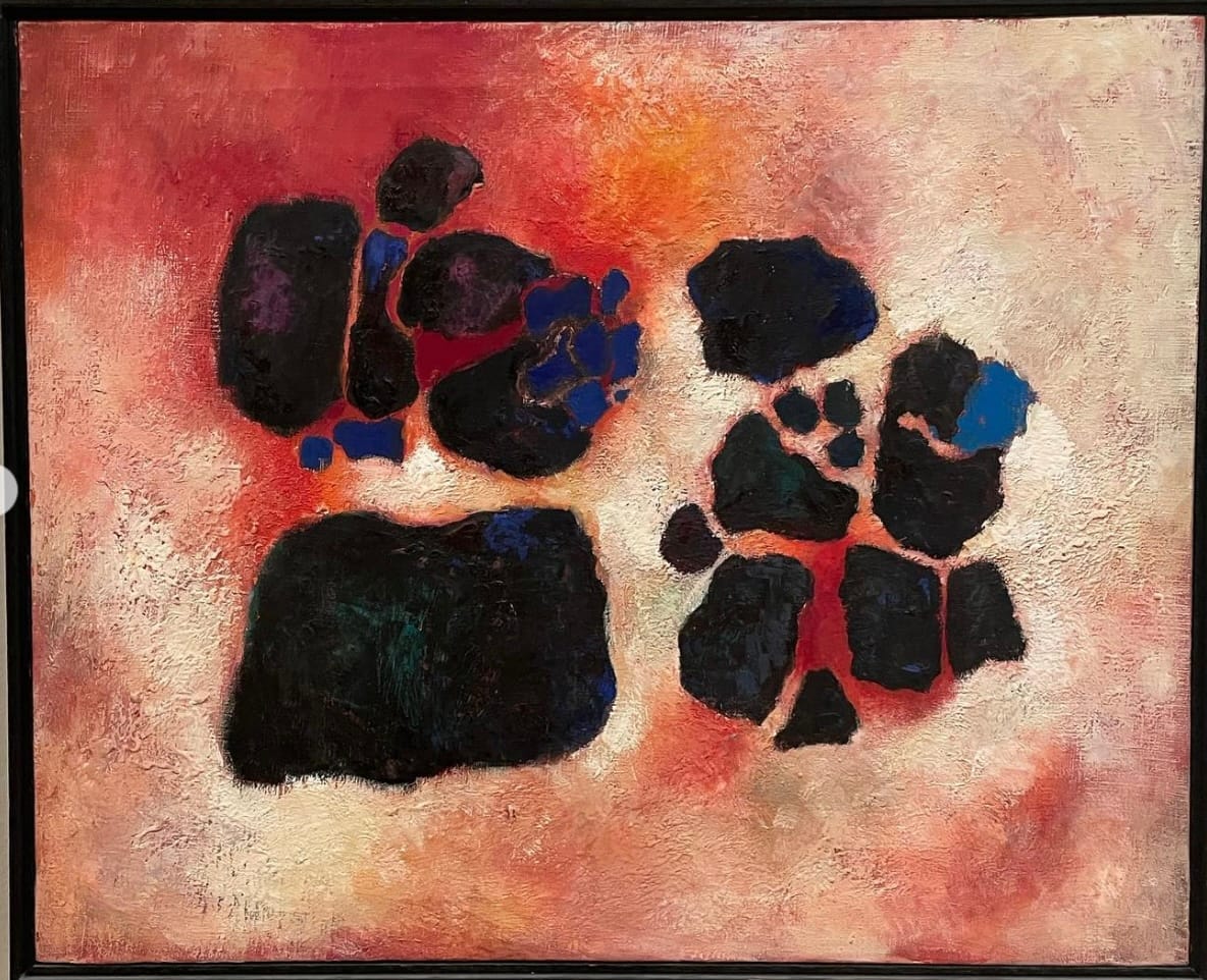 Mercedes Pardo, “Pequeña nada [Little Nothing]” (1959), oil on canvas, 23 1/2 x 28 5/8 inches (photo Angelina Lippert/Hyperallergic)