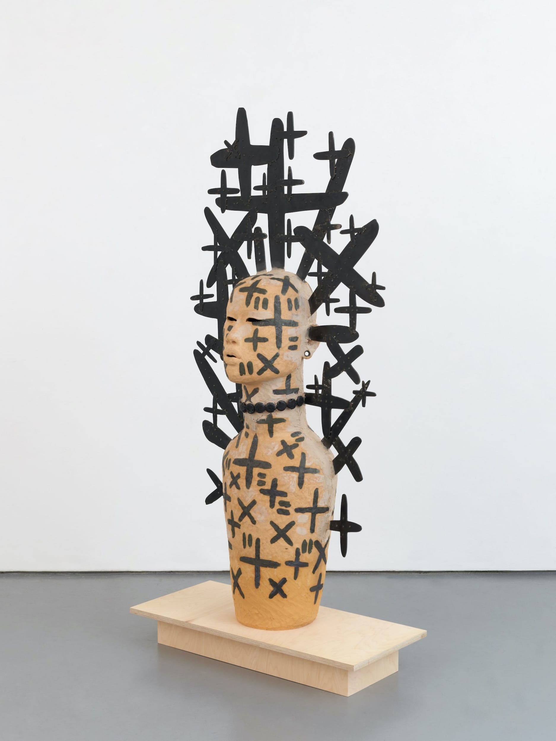 In her debut New York exhibition, Rose B. Simpson: Road Less Traveled, Simpson proved something I suspected when I first saw reproductions of her: She is one of the most needed artists of her generation (she was born in 1983). My admiration has continued to grow in the months since her show because I see that how she lives life and what she makes are not separate. Simpson is an enrolled member and resident of Khaʼpʼoe Ówîngeh (Santa Clara Pueblo in New Mexico), which is famous for producing blackware and redware pottery. She comes from a family of artists and scientists, who are concerned with sustainable living systems. In order to come into her own, Simpson left the Santa Clara Pueblo and studied flamenco dancing, ceramics, creative writing, and automotive science, among other things. That voraciousness to learn feeds her work. It is out of this cross-pollination of cultures, techniques, chance meetings, and self-determination that Simpson achieves a necessary synthesis of opacity and clarity, mystery and directness. She also resists making her figures culturally specific while committing herself to both telling her story and communicating her ancestral identity. There is nothing universal about Simpson’s genderless figures, but they are as necessary as the clay from which they are made. —JY