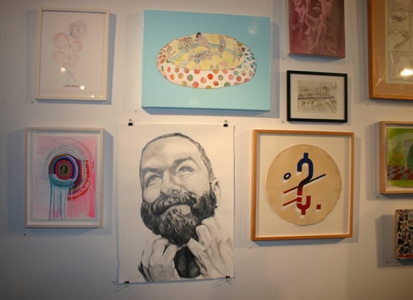 Ok, so far so good. Unfortunately when I actually got to the space any sense of narrative or dialogue was totally submerged in the visual confusion that comes with inviting 100 artists to participate in a group show. While I appreciate the inclusiveness behind such a display, like the crowded opening itself, this sort of arrangement makes listening to conversation pretty difficult. Though I haven’t spoken with the curators, and there was no real press release to speak of, it seems the topic at hand was more of a writing prompt than anything else. There is probably something to this sort of logic. Unfortunately the result was just too busy, like a miniature art fair without the booth dividers that give them some semblance of order. Why come up with a topic at all? Why not name the exhibit “100 pretty awesome artists that you probably don’t know”?