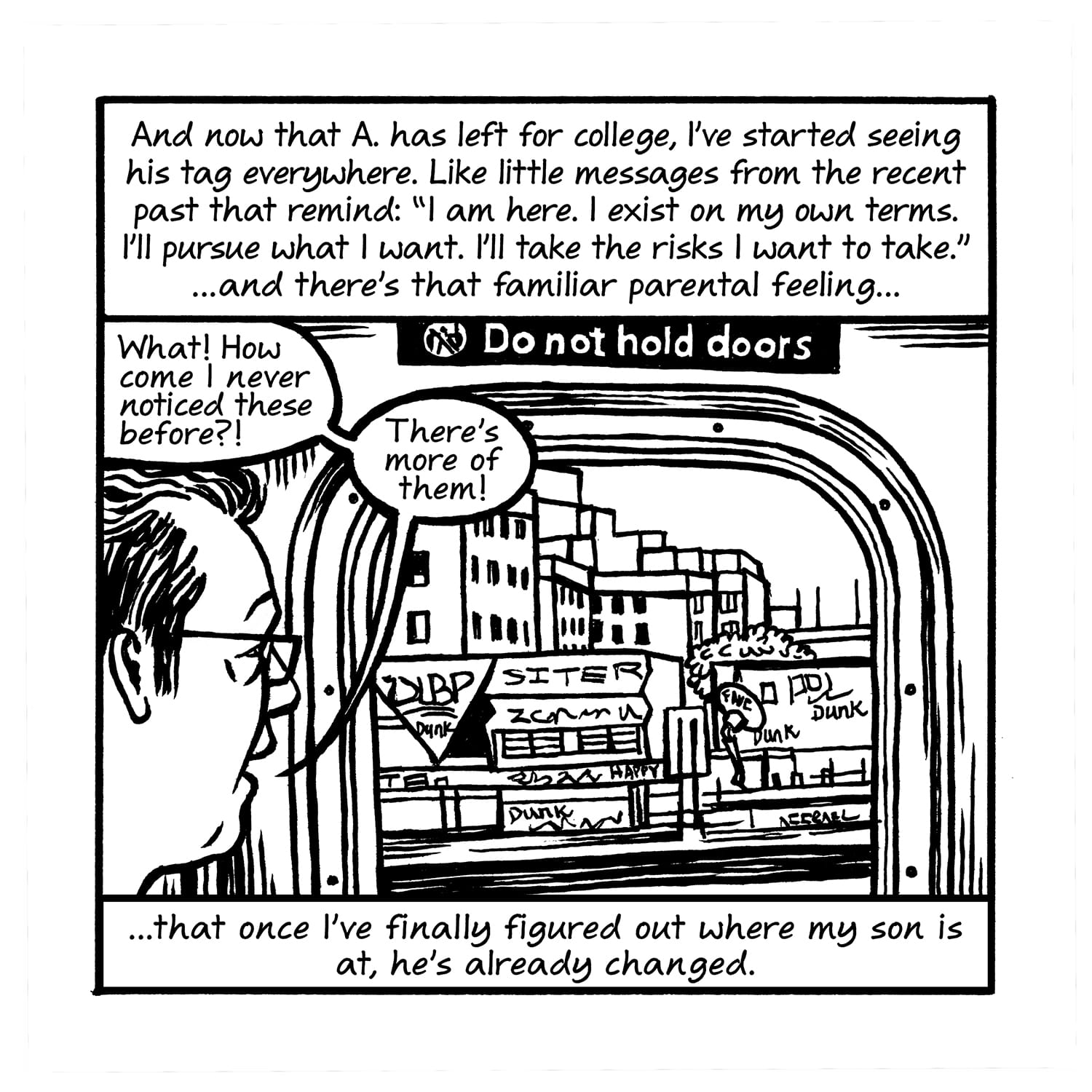 Revisiting my teenage years working for artists Freedom and Crash and renovating Keith Haring's Pop Shop, I wrestle with the ironies of parenting as my son takes up tagging.