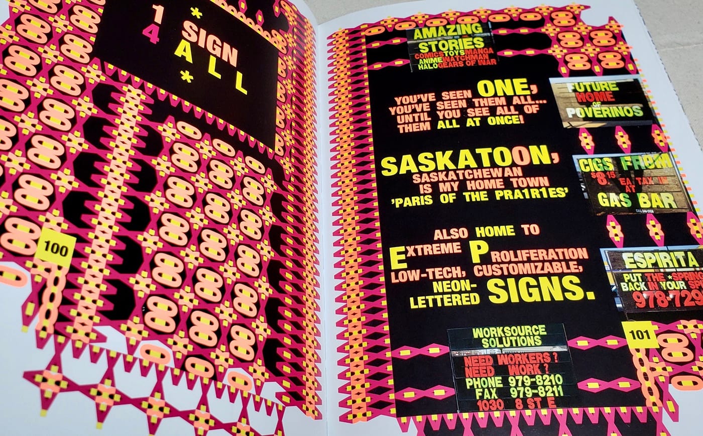 “My typographic treatment will no doubt cause a certain amount of pain to some of my more rigorously trained colleagues in my profession of graphic design,” she writes. “However, I make no apologies for the typographic jungle I’ve painstakingly nurtured.” Bantjes goes on to argue that her treatment of the type and layout is “very conservative” by virtue of the fact that is it “ultimately readable.” One might consider readability to be an entry-level consideration for a book of essays, but given Bantjes’s stated claim, later in the introduction, that “the point of many of the things I write is simply to look at things differently and be able to extrapolate from one thing to the next,” it feels pedantic to apply such standards to her work. Bantjes is driving at something entirely different here, and the result is perhaps closer to an ultra-designed sketchbook, where a lack of restraint or editorial finish can be forgiven, in favor of the kind of kinetic energy that arises in the excitement of discovery.