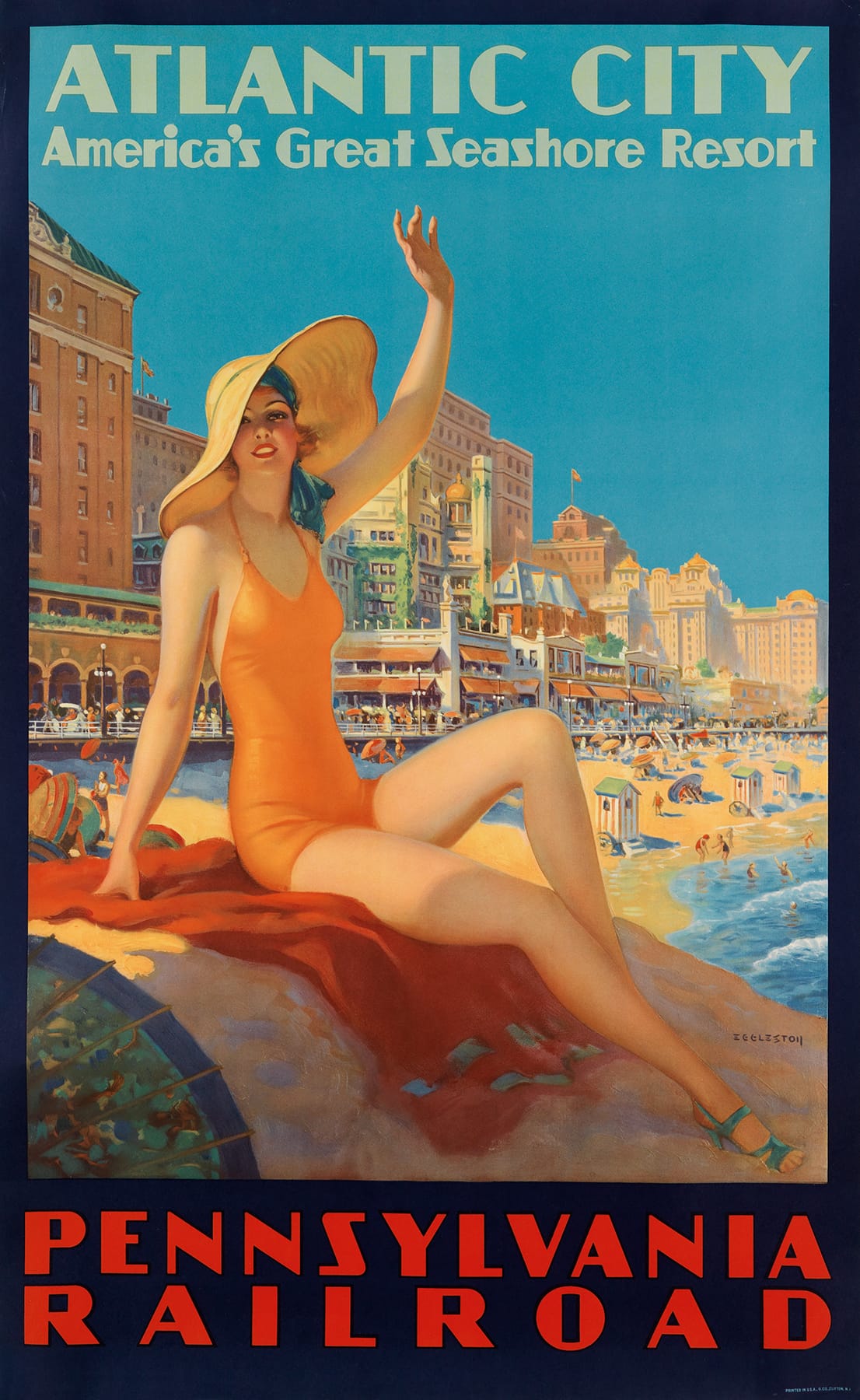 In New York, Swann Galleries set 10 records in their “Rare and Important Travel Posters” sale, marking them as leaders in the poster sale industry. The most expensive work was a poster (c. 1935) by Edward M. Eggleston. Produced for the Pennsylvania Railroad to encourage travel to Atlantic City, the poster features a woman beachside. It went to an unnamed institution for $16,250.