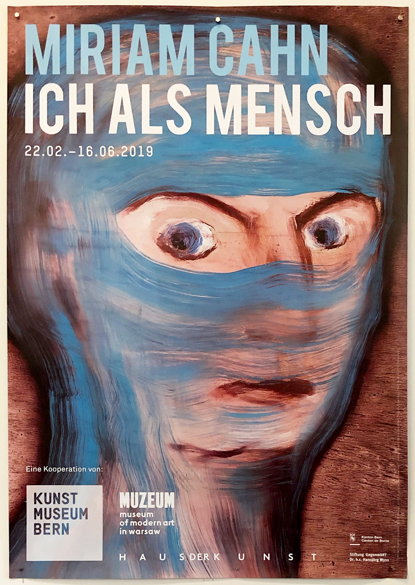 Poster for the current Miriam Cahn exhibition, “Ich als Mensch (I as Human),” featuring the painting “meredith grey (gestern im TV gesehen), 15.7.15” (2015), oil on wood, 10.24 x 11 inches (all photos by the author for Hyperallergic)