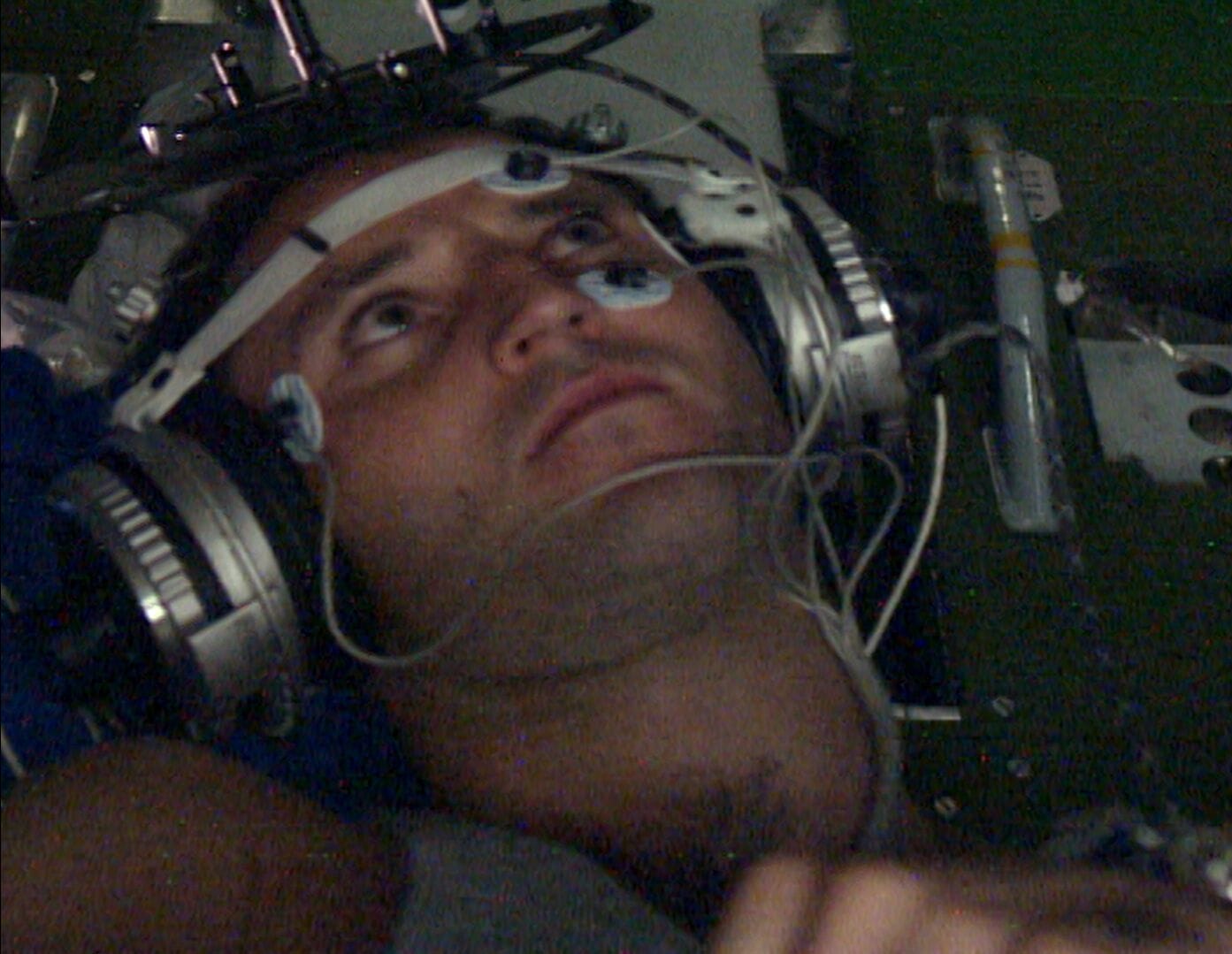 Films using materials from the USSR also had a significant presence in the program. Sergei Loznitsa’s State Funeral (previously covered on Hyperallergic here) finds a kindred spirit in Maciej Drygas’s One Day in People’s Poland (2005), which pairs footage of the country in the early 1960s with readings of secret police notes, bringing Thursday, September 27, 1962 to life. (Drygas was set on choosing an entirely insignificant day to focus on.) The eventual dissolution of the USSR touches Andrei Ujica’s Out of the Present (1995) in an unusual way. Drawing from all kinds of tape and film footage, it starts as a portrait of cosmonaut Sergei Krikalev and his mission to the Mir space station. During the mission, the Soviet Union breaks up, but the cosmonaut is largely unfazed by this. This makes sense in light of what we see through Krikalev’s eyes. A camera he wore during a spacewalk provides a staggering POV shot, and one sequence features the camera clicking through different portions of the cloudy sky as if it’s a slide projector. With such a view, it’s easy to see how events on Earth would seem so insignificant.