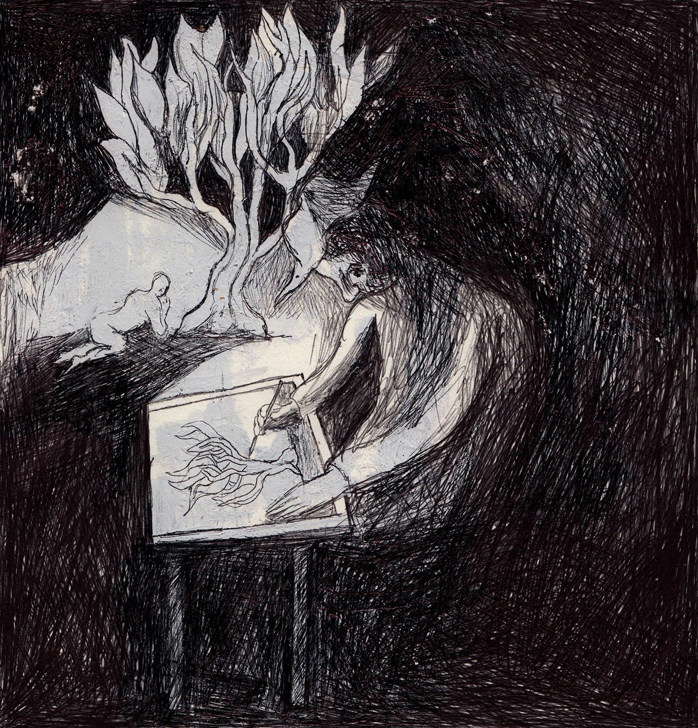 Recently reading the mythology of the burning bush, in which God is revealed to Moses for the first time, it struck me that this image evokes that flavor of horror Borges so effectively describes. How is it possible for the bush to be in flames but not consumed by the fire? Is it God’s hand at work, or is it Moses’s own dream-reality ? Is it possible for us, in ourselves, to ignite a fire, a passion, that doesn’t destroy?