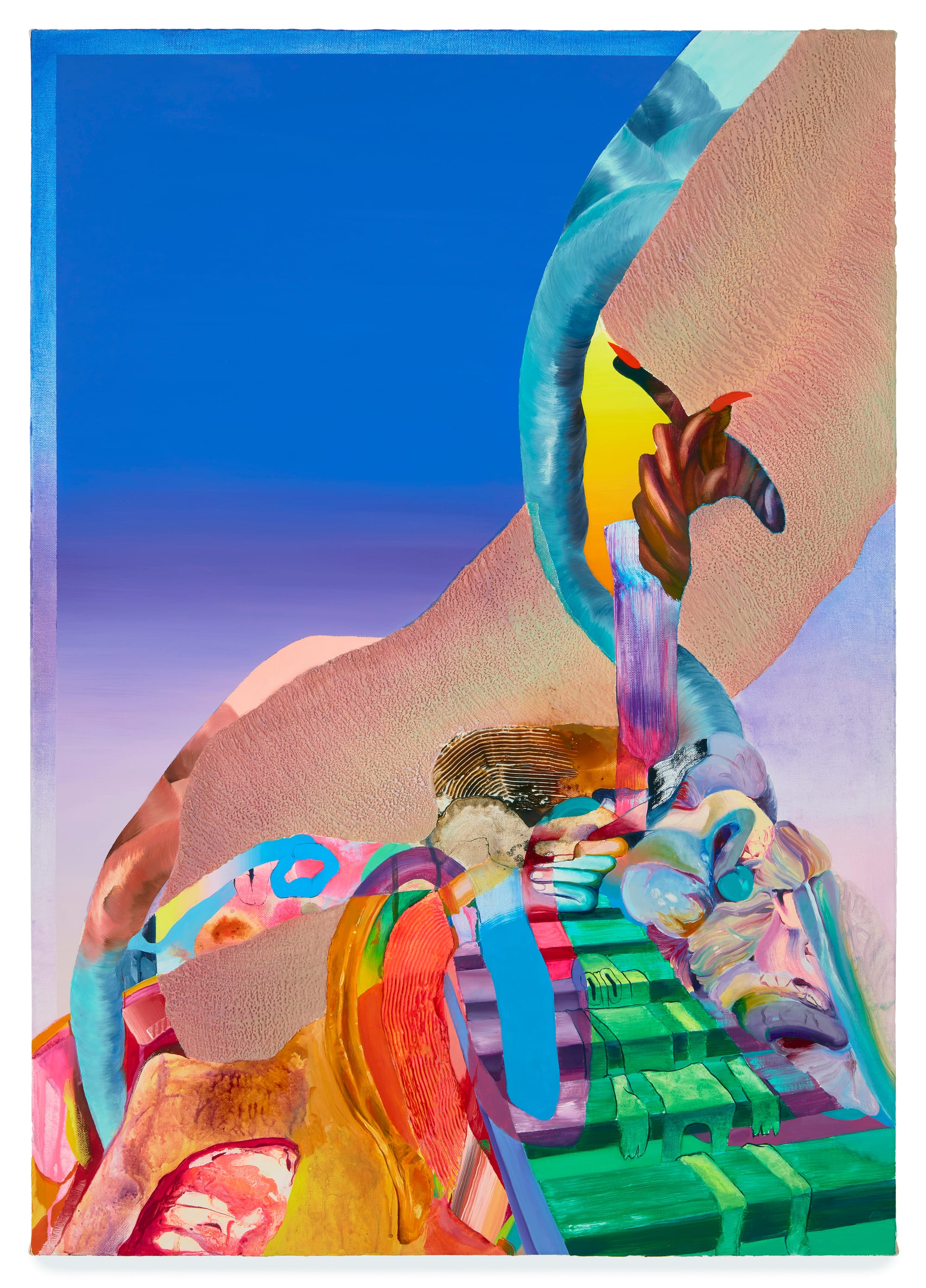 Ilana Savdie begins her works by drawing. Disjointed limbs and razor sharp nails, burrowed in seas of black ink, inform the nine new paintings that comprise Swimming in Contaminated Waters, the artist’s first solo exhibition at Deli Gallery. Savdie scans and manipulates these drawings digitally, dividing and aggregating body parts among thrilling palettes to map new geographies altogether. When transferred to canvas, these scenes electrify.