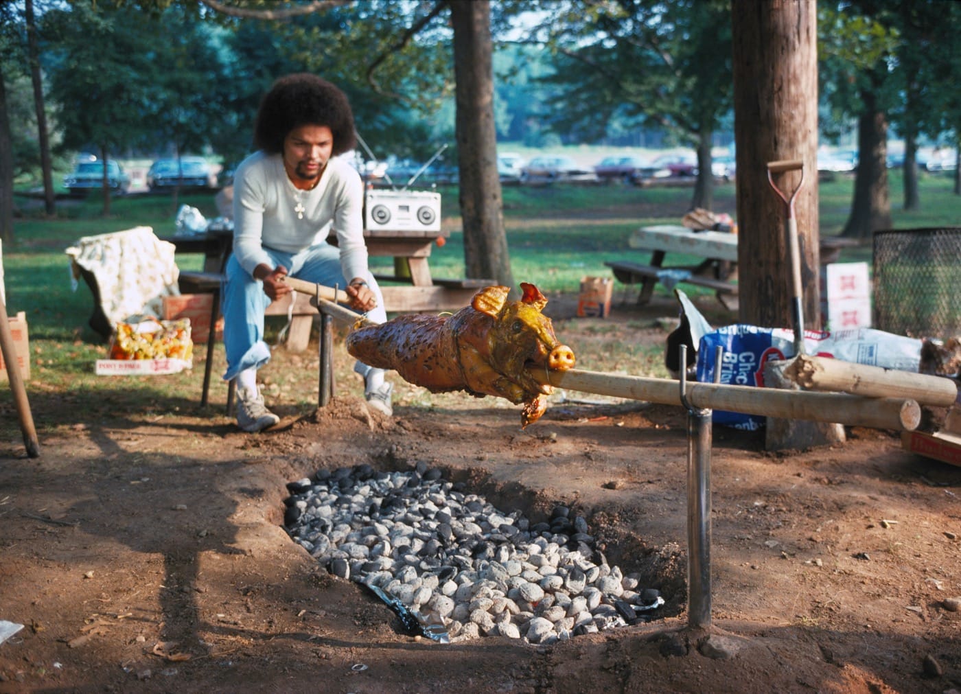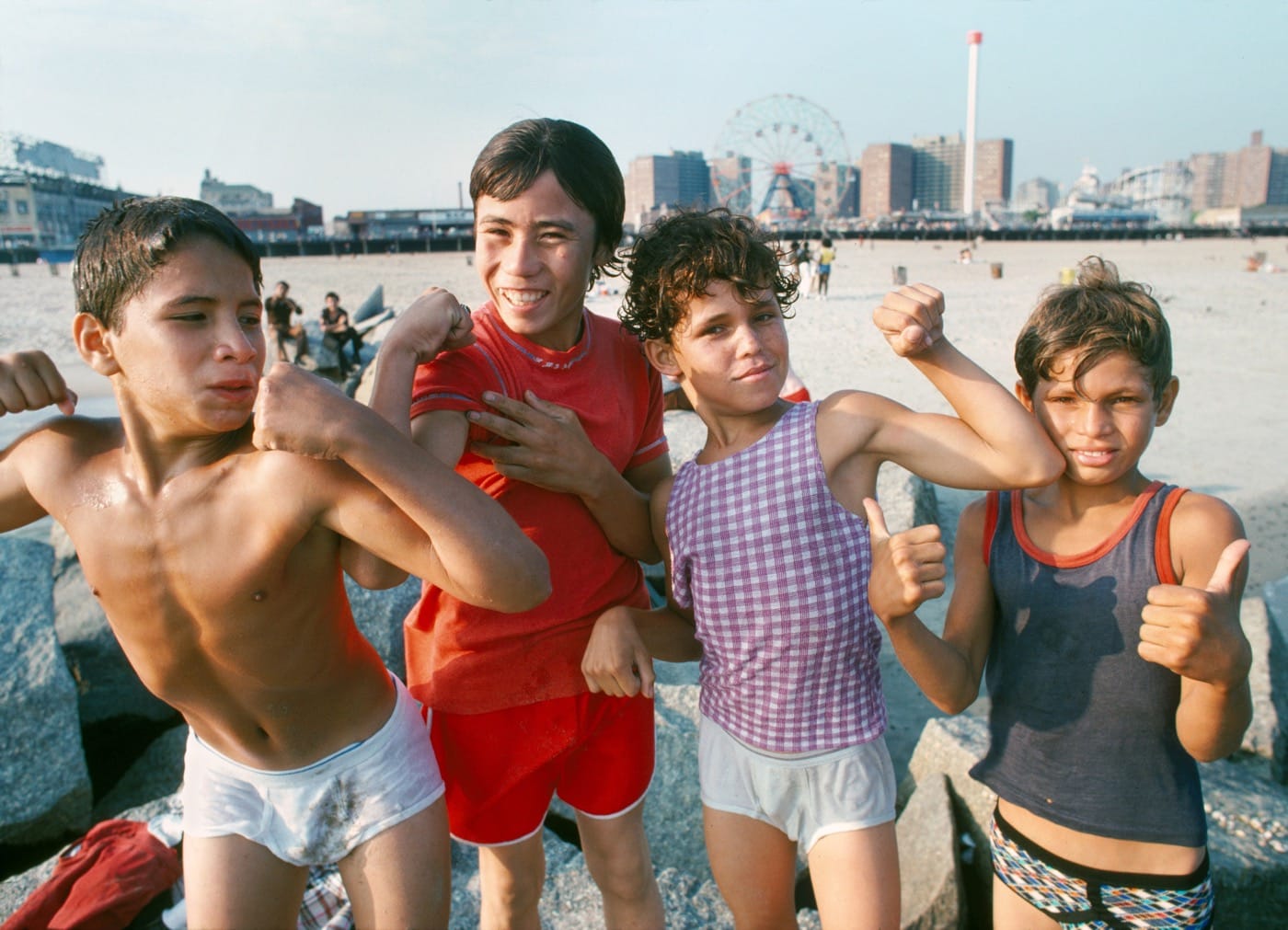 The photographs capture unguarded moments and celebrate the beauty of serendipity in a city which didn’t have much to celebrate. The parks are alive with people in the summer of 1978; they are almost like a life-giving oasis where people soak up the sun after a swim, roast a whole pig, play the drums, dance and sing out loud. The people in the photos form a cross-section of the New York society: diverse and joyful, representative of a pre-gentrified, middle-class New York thriving in its social and geographic diversity. These are New Yorkers who took to the parks to find respite from the drudgery of the world outside. There are photos of the Fiesta Folklorica in Central Park that have crowds standing mesmerized around a gurgling Bethesda Fountain, (incidentally taken on the day the fount sprang to life after going dry for 5 years). The boardwalk on Coney Island lies splintered but that does nothing to hamper the gait of the three young women excited for a swim. A little boy plays with his cats and adults play double Dutch. People paint landscapes, or run with their dogs while a French dock worker plays his boules.