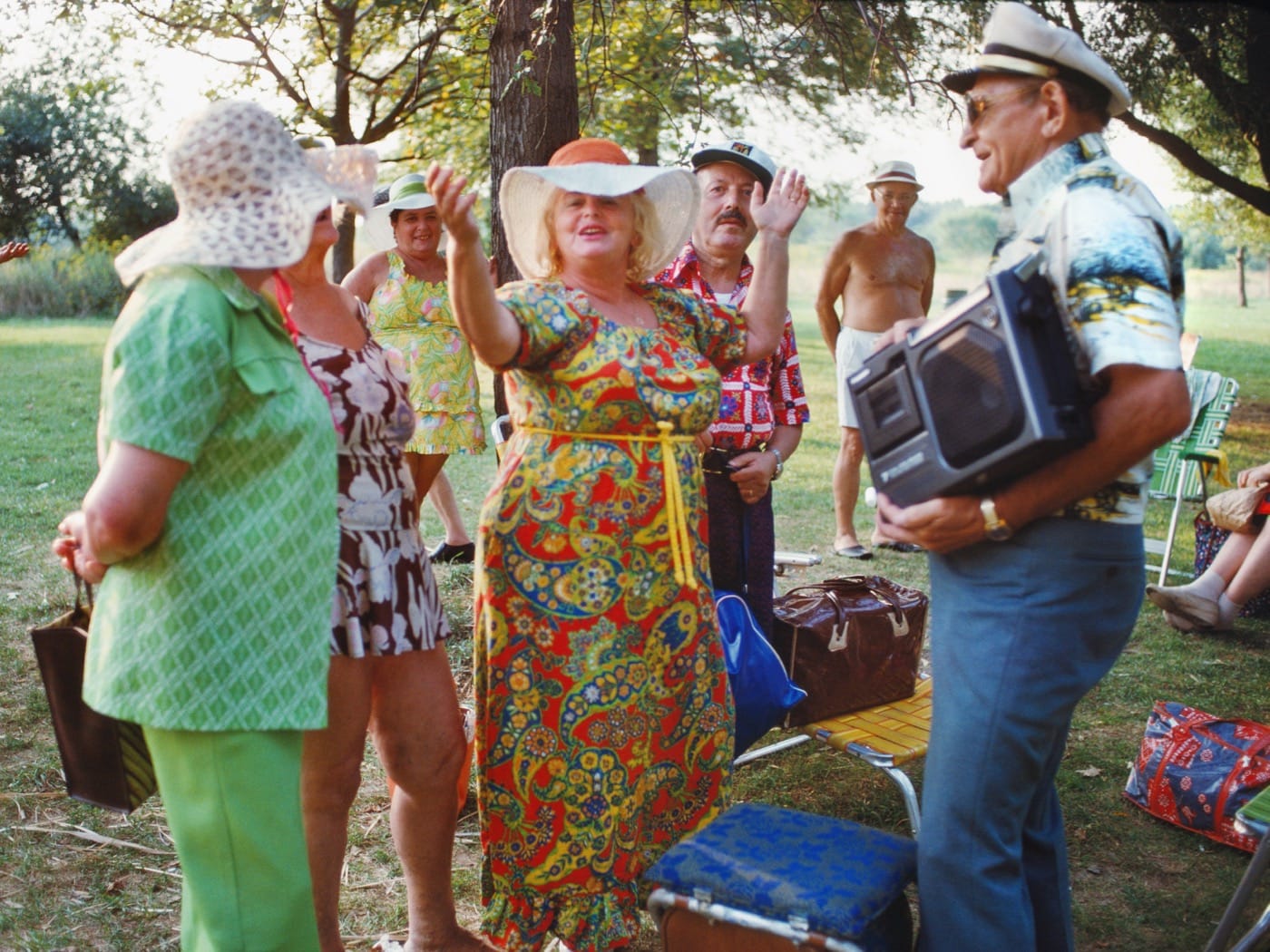 While being extremely diverse in what the photographs portray — a performer kissing his cockatoo in Washington Square Park, maintenance workers arriving at the Orchard Beach, a little girl licking her arm in Battery Park, a golfer wheeling his cart in a misty Forest Park, Queens — they are all connected in that they create a sub-narrative to New York in the late’70s. They impart an uncommon joie de vivre in a story that is commonly defined in terms of disintegration and sadness. They highlight the importance of public parks in their role as universal common denominators that serve every person who comes visiting — with a fishing rod, with a ball, a broken picnic table, or nothing at all.