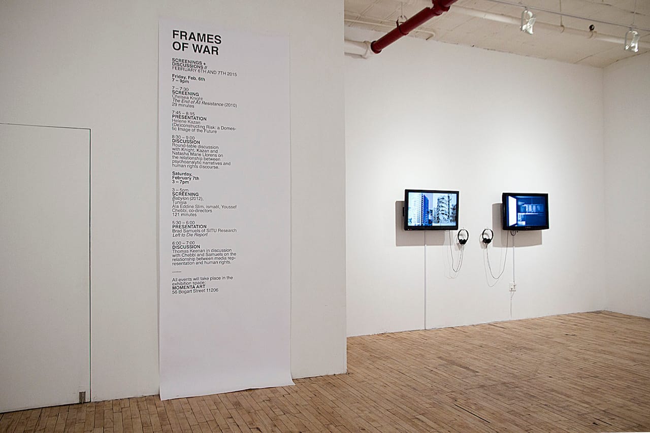Frames of War continues at Momenta Art (56 Bogart Street, Bushwick, Brooklyn) through March 23.