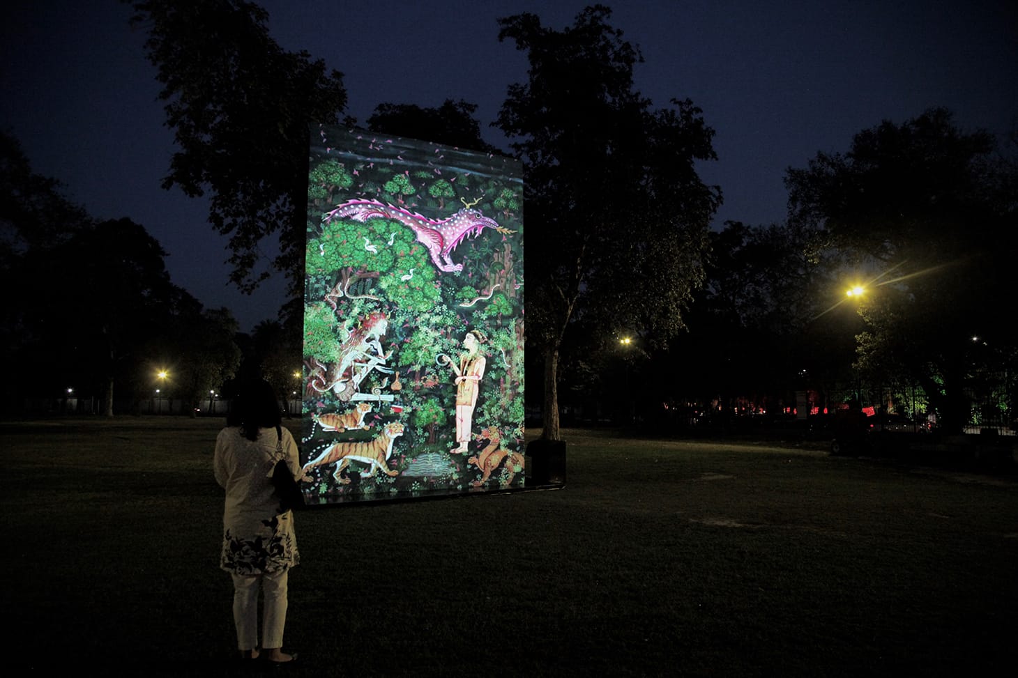 LAHORE, Pakistan — Earlier this year, New York City-based Shahzia Sikander presented her work for the first time in the city where she grew up. Sikander is well known for how she transfigured the language of miniature painting, a form she learnt as a young undergraduate art student at the National College of Arts in Lahore. She has since mobilized the language of animated film, and one of these — “Disruption As Rapture” (2018) — was recently installed at two outdoor locations: the Lahore Fort and Alhamra Gardens. The work attests to Sikander’s strong interest, both in playing with scale as well as in collaboration across disciplines, from music to literature, with an eye open to theater. The installations were part of another first — the inaugural Lahore Biennale that took place this year from March 18–31.