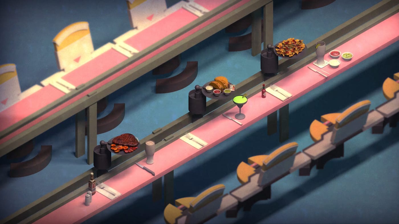 Quah’s animated pink homes are fully automated, transporting food to plates to table, steaming clothing, and providing comfy nooks for sundry items. The mid-century, space-age devices throughout the home move with robotic efficiency, but their language, so to speak, is rather humanoid, as if the house were alive. Nadya Krupska, a fictional “Resident of the Silvertown Automated Housing Association,” likens her home to a human: “Sometimes, it feels it has a mind of its own … Although I love to be taken care of.” She details instances in which the house becomes “angry,” memorizes her dietary preferences, and suggests healthy food options. Attentive, detail-oriented, and temperamental, the house is not dissimilar — stereotypically — to a woman.