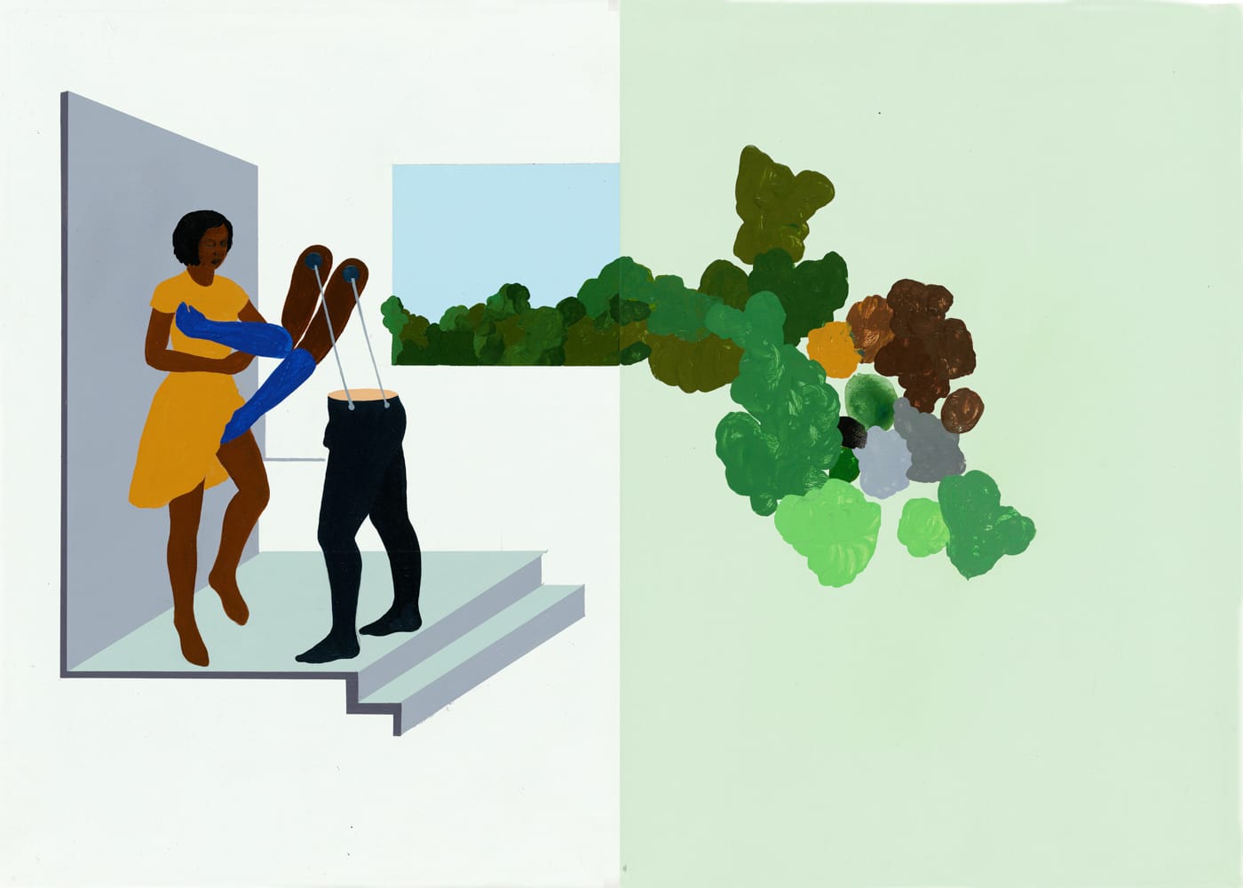 In Otobong Nkanga’s art, figures appear dismembered and limbless, indicating that they have been industrialized as tools of production and exploitation.
