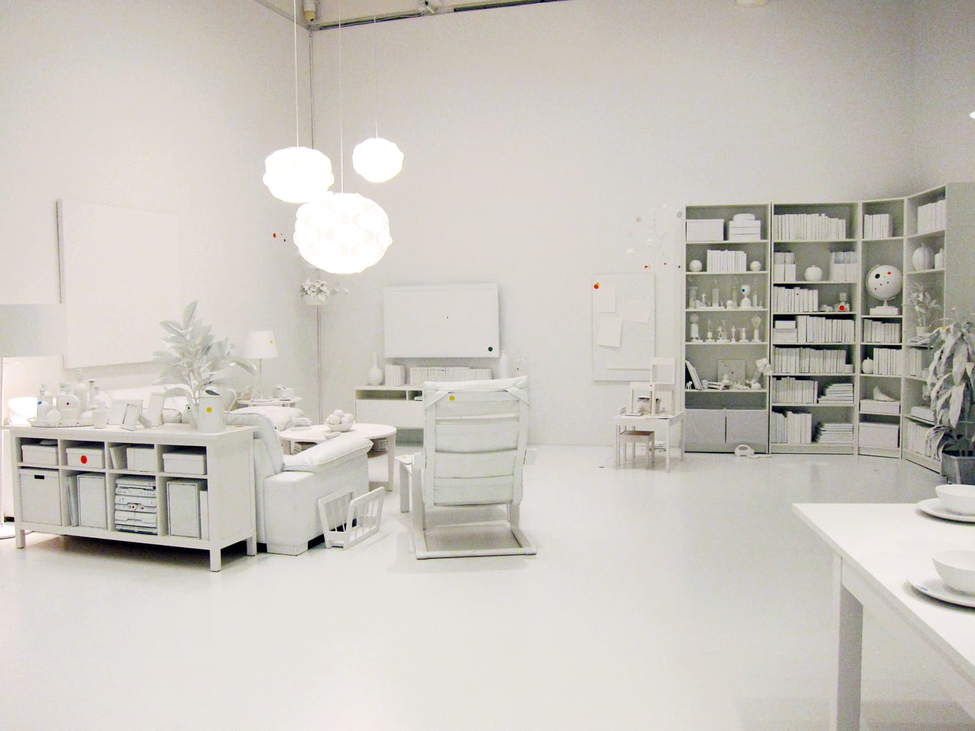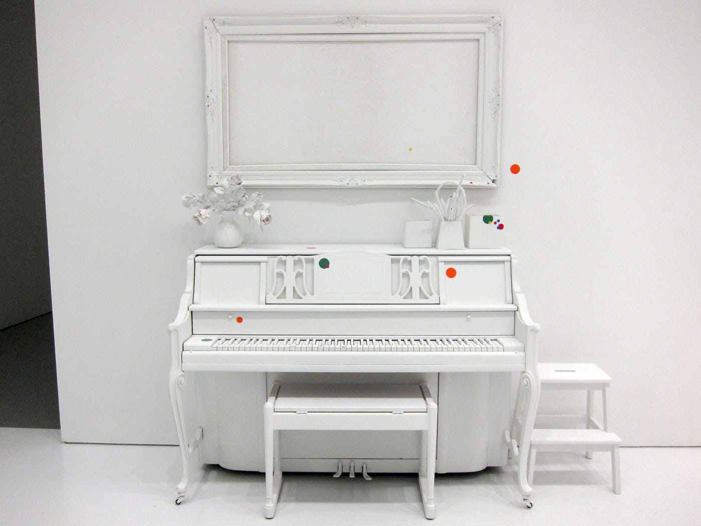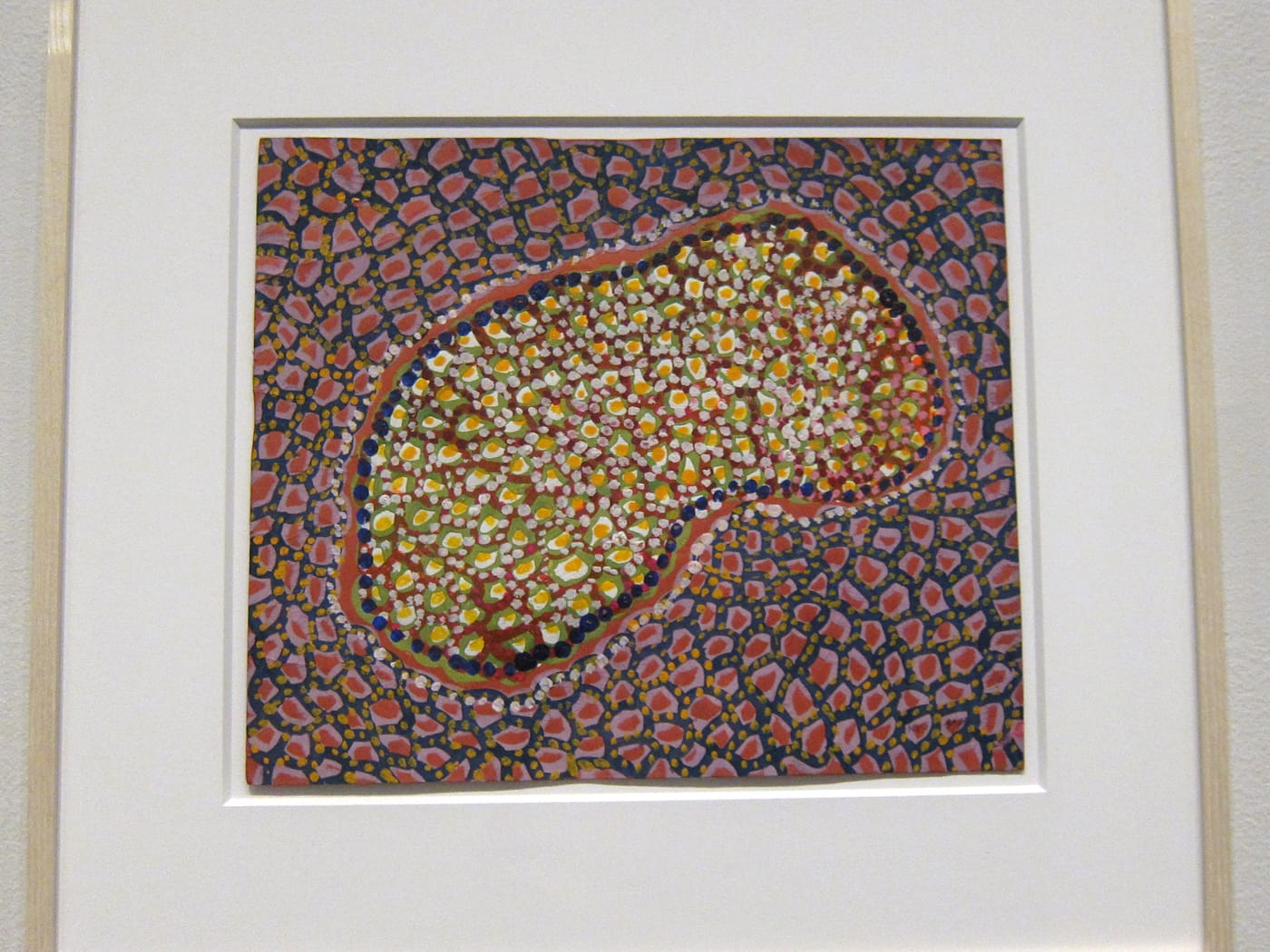 But “The Obliteration Room” is just fun, namely because it grants an opportunity to immerse yourself entirely in Kusama’s eccentric world. Her mirror rooms, though transportive, offer limited experiences — you can’t walk further than a few feet in each — and you can’t touch anything, of course. Many of her sculptures unfortunately shed some of their magic, staunchly established as objects in a museum as they perch on platforms, are set to the side, or stand behind rope. The yellow tentacles of “Life (Repetitive Vision”) (1998) could have appeared to break through the museum’s floor like an unruly cephalopod rather than served up like exotic calamari on a white platter. The eye-popping series My Eternal Soul is presented as if in a showroom, with sculptures standing in front of large paintings stacked one atop another.
