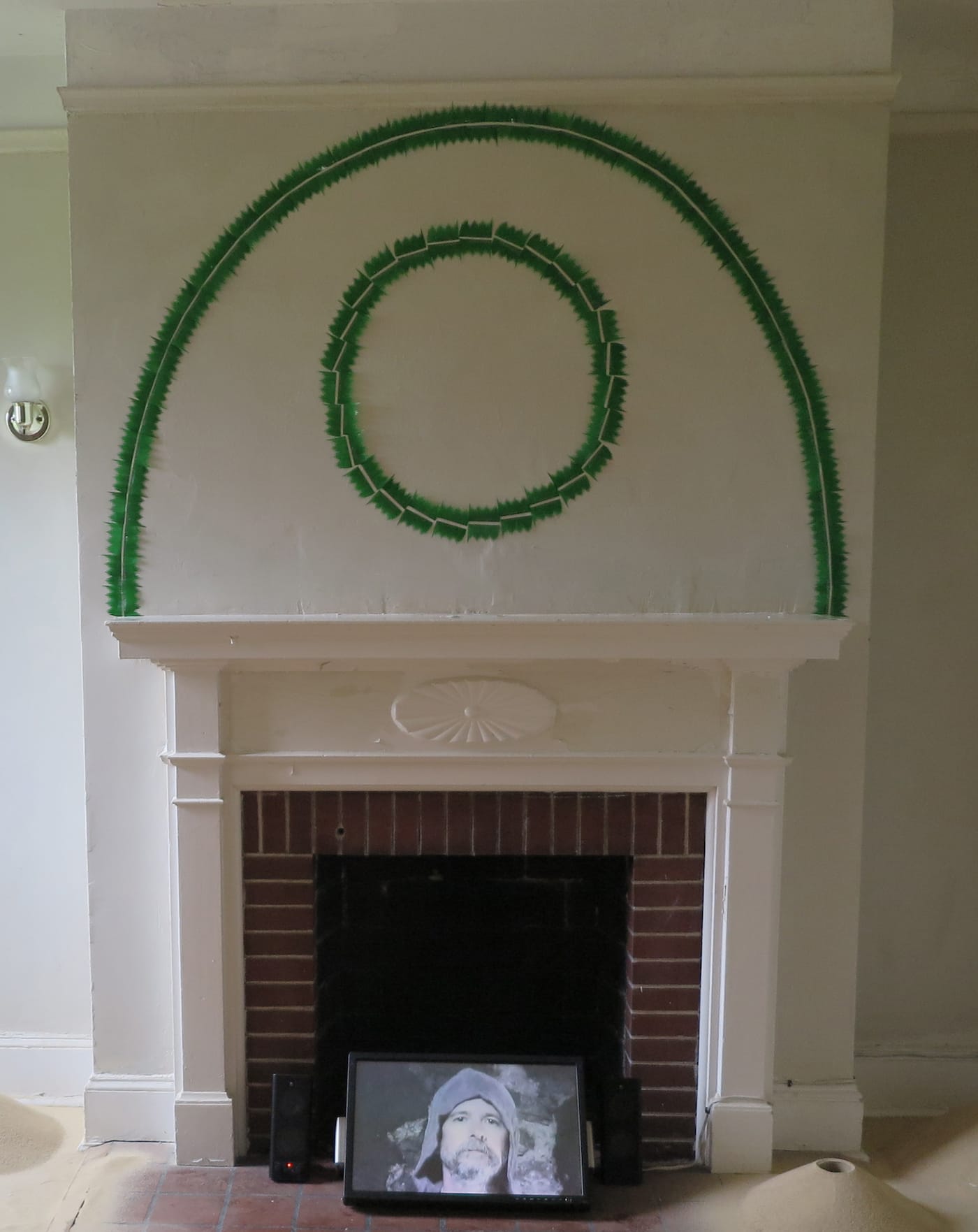Aside from their general similarities, the exhibitions reflect very different curatorial styles. Early Encounters, organized by Savona Bailey-McClain of the West Harlem Art Fund, is designed to prevail over the dilapidated condition of the walls and ceilings. Contending with peeling paint and broken plaster, the artists manage a surprisingly effective contemplative atmosphere. With each participant assigned to a room, the work transcends the house’s frayed condition with quiet aplomb.