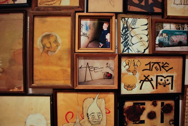 Barry McGee is one of the more famous street artists to emerge out of San Francisco. His work “Untitled” (1996) struck me as being very much a logical museum display method for an obsessive street artist. If McGee is anything like the street artists I know, he probably is constantly drawing on anything, from stickers to walls to found pieces of paper. That obsessive street artist quality was definitely felt in this large installation that was part documentation of illegal tags, part paintings, part blackbook, and more.