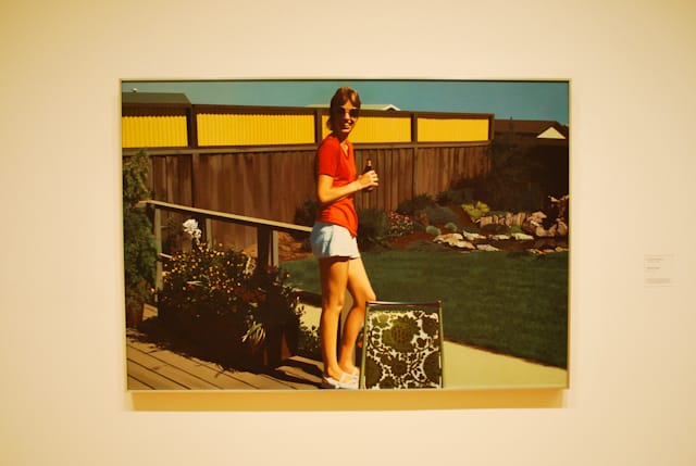 Although we mostly hear artists talk about the quality of light in Los Angeles, I have noticed that the Bay Area has a unique quality of light unlike anywhere else I have lived. The morning can be completely grey and foggy, turning quickly to sunny and pleasant throughout the day, and then the light can transform into a very intense, almost harsh golden sun as it nears sunset. I have only been here for three weeks so maybe I am jumping to conclusions, and Watsonville is actually south of the Bay Area, but this painting by Bechtle struck me as very much a painting of the area. The laid-back nature of the place, the beautiful and golden sun in the evening, and the highly manicured mini-lawns of the area are all new to me, and I enjoyed seeing that reflected by Bechtle, a San Francisco native.