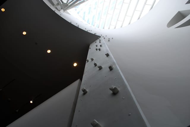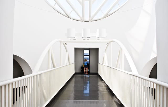 Of all the art I saw on my first visit to SFMOMA a couple of years ago, one of the most visceral memories I have is walking on this walkway and passing over the top of the atrium. Reaffirming a certain admiration for Barney’s work, which had him rock climbing up to this point, this beautiful and sun-filled walkway is not for those afraid of heights. One can see through the walkway to the floor five stories below, and it is an experience in and of itself.