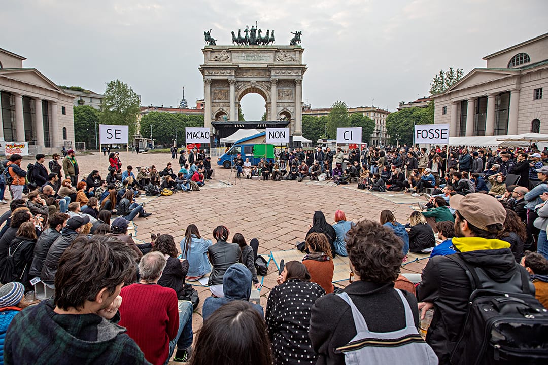 Macao’s eclectic programming acts as an antidote to capitalist logic — the group is an advocate of the notion, shared by thinkers as diverse as Adorno and Debord, that the irrationality of art making can somehow upset the forward march of a market mentality devoid of humanity. In this light, it’s worth noting that swathes of the newly redeveloped Milan have in recent years been sold off to foreign investors, including the Qatari Emirates, which owns 100% of Porta Nuova, an area of the city that’s worth over $2 billion and was planned and completed to coincide with the Expo. To Macao, this is indicative of an underlying ideological motivation to redevelop Milan in line with a neoliberal vision of property investment. Under this vision, the needs of the community come second to profit.