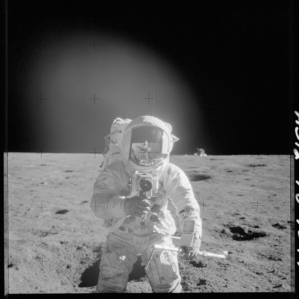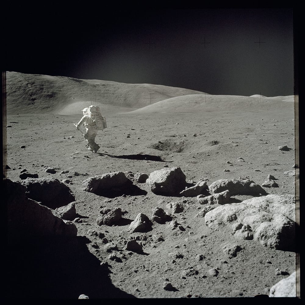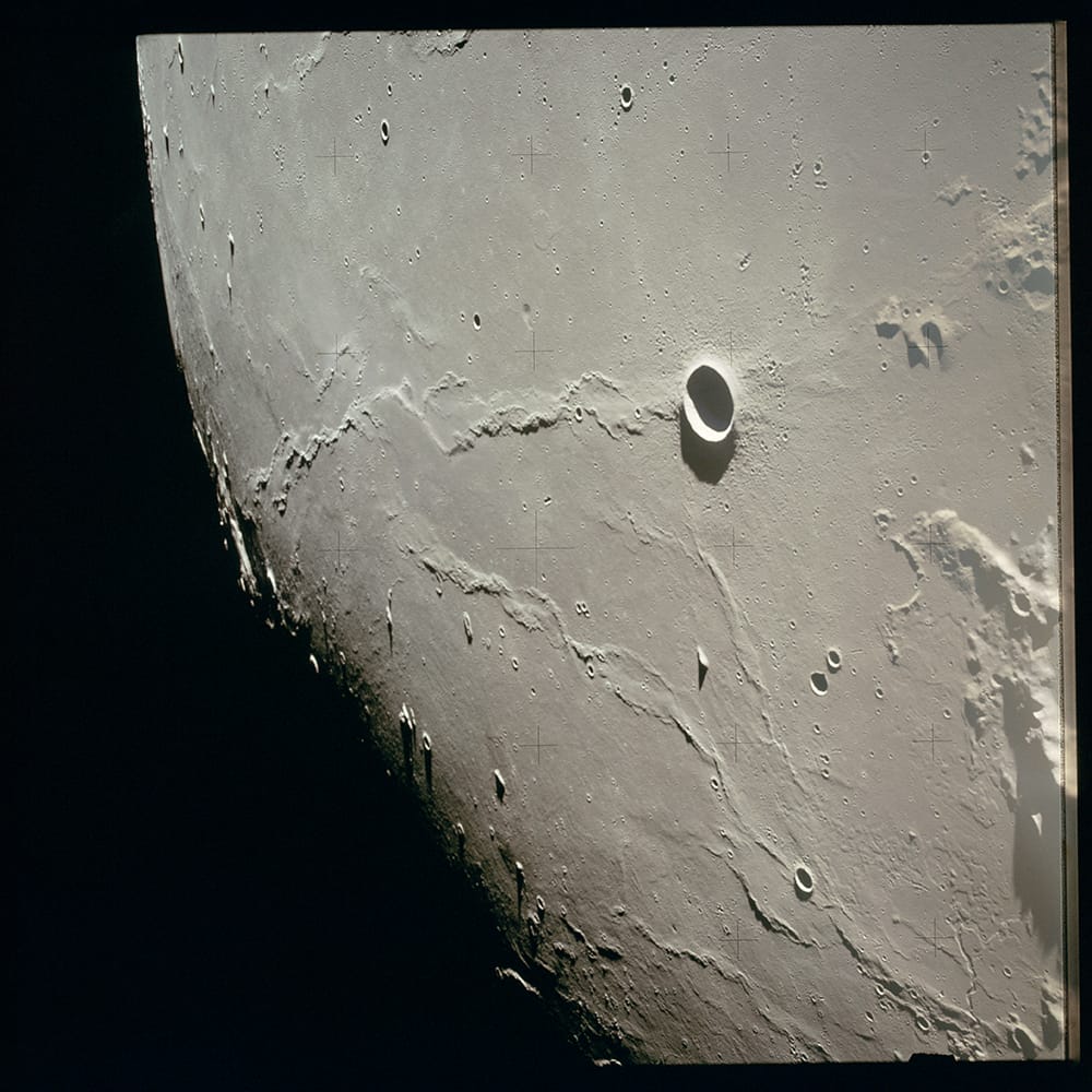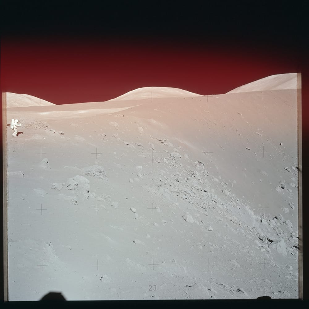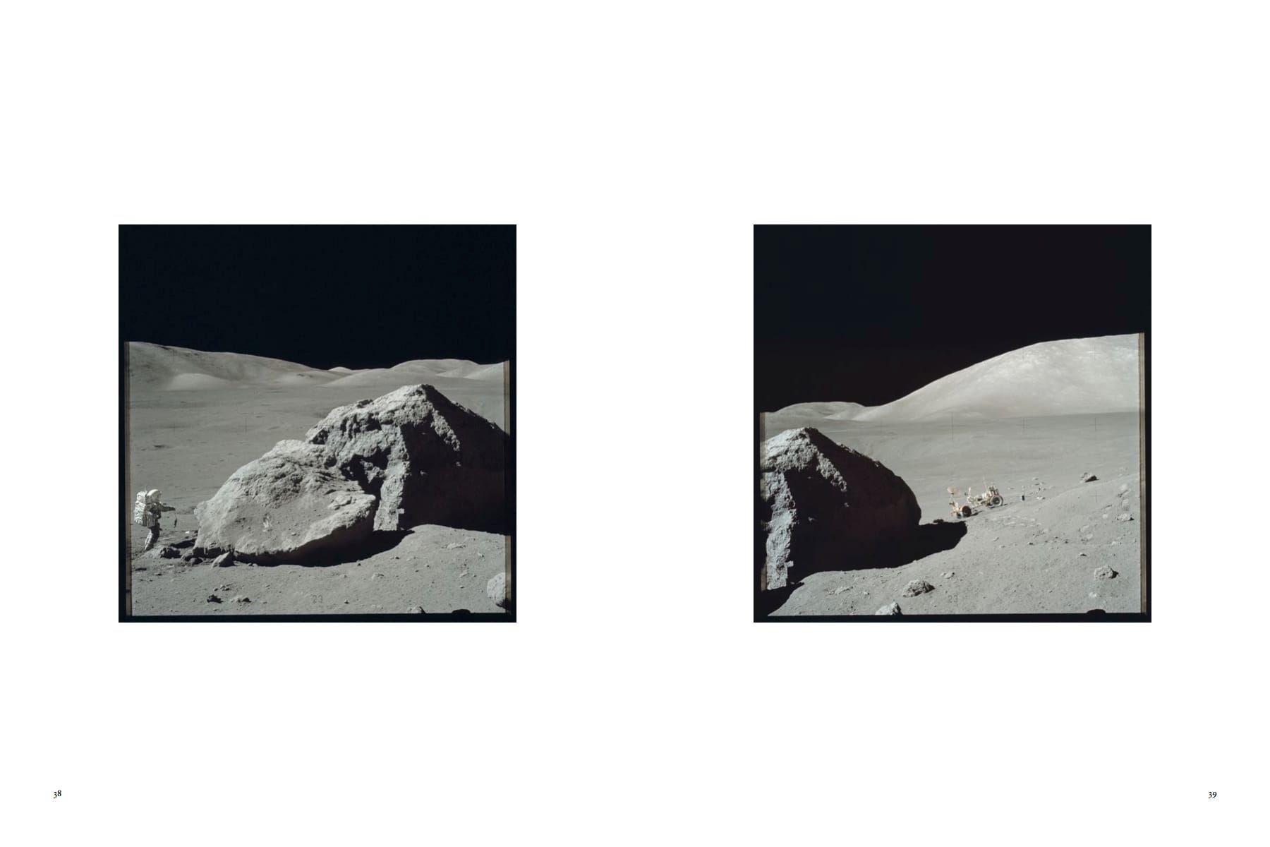 In his introduction to The Moon 1968-1972, Tom Adler, the book’s publisher, explains that the Apollo astronauts’ photo equipment included “specially designed, 70mm Hasselblad cameras,” twelve of which were left behind on the moon by the time Apollo 17, the program’s last mission, returned to Earth in December 1972. They were abandoned there to make room in the spacecraft for the lunar rocks and specimens the astronauts brought home with them. “Prior to their missions,” Adler writes, they had all “trained extensively with the sophisticated Hasselblads, taking hundreds of photographs in challenging real and simulated settings in order to familiarize themselves with the technology. They were even encouraged to take the cameras on family trips.”