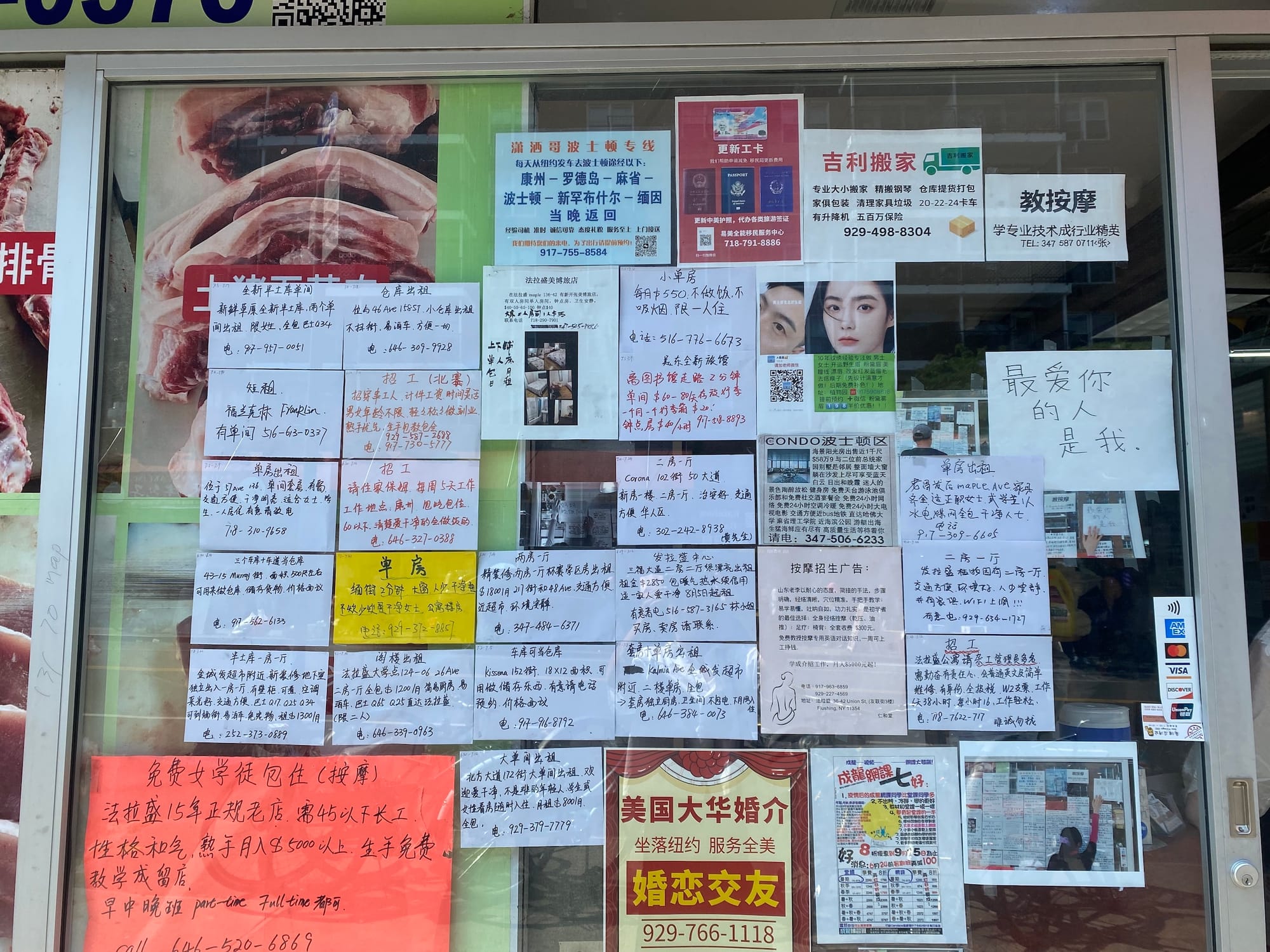 “You can get everything you need when you start a life in New York,” Zhang said, pointing out how many newcomers, luggage in hand, will often stop at the mini-mall first to browse the bulletin’s housing options, set up their phones, buy food, send money abroad, and purchase other home supplies.