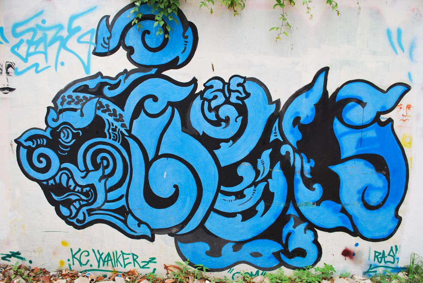 Traditional Cambodian subject matter, like Kbach design and Angkor Wat, is pervasive. Also found is Rahu, a bodyless god who lives in the sky and catches the moon or the sun, briefly swallowing them whole to create eclipses. I’m saddened that, given the beauty of Khmer script, I rarely see it used in street art. I think this is a testament to how foreign-oriented the scene currently is.