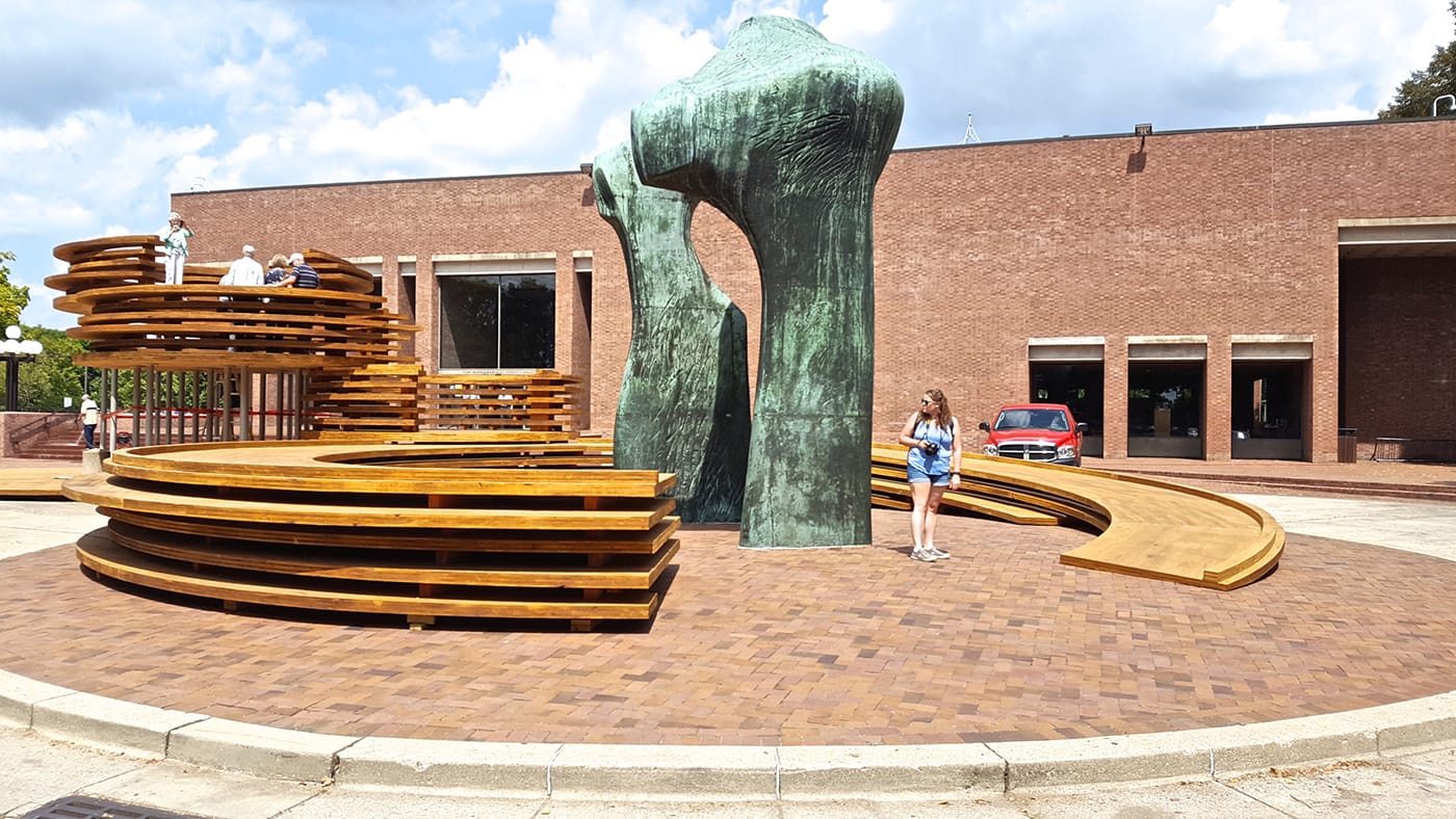 Finally, IKD’s Conversation Plinth, which curls around the giant Henry Moore sculpture outside the Cleo Rogers Memorial Library (my god, who designed that library? I. M. Pei, 1969), was the clear winner by my completely arbitrary evaluation system, which I swear I developed before knowing that one of the designs had a giant, sloping ramp, perfect for catching air as you launch across a sidewalk of flustered Midwesterners. Luckily, everyone in Indiana scrupulously obeys the speed limit, so no lives were lost that day. Congrats, IKD, for your highly skateable design!