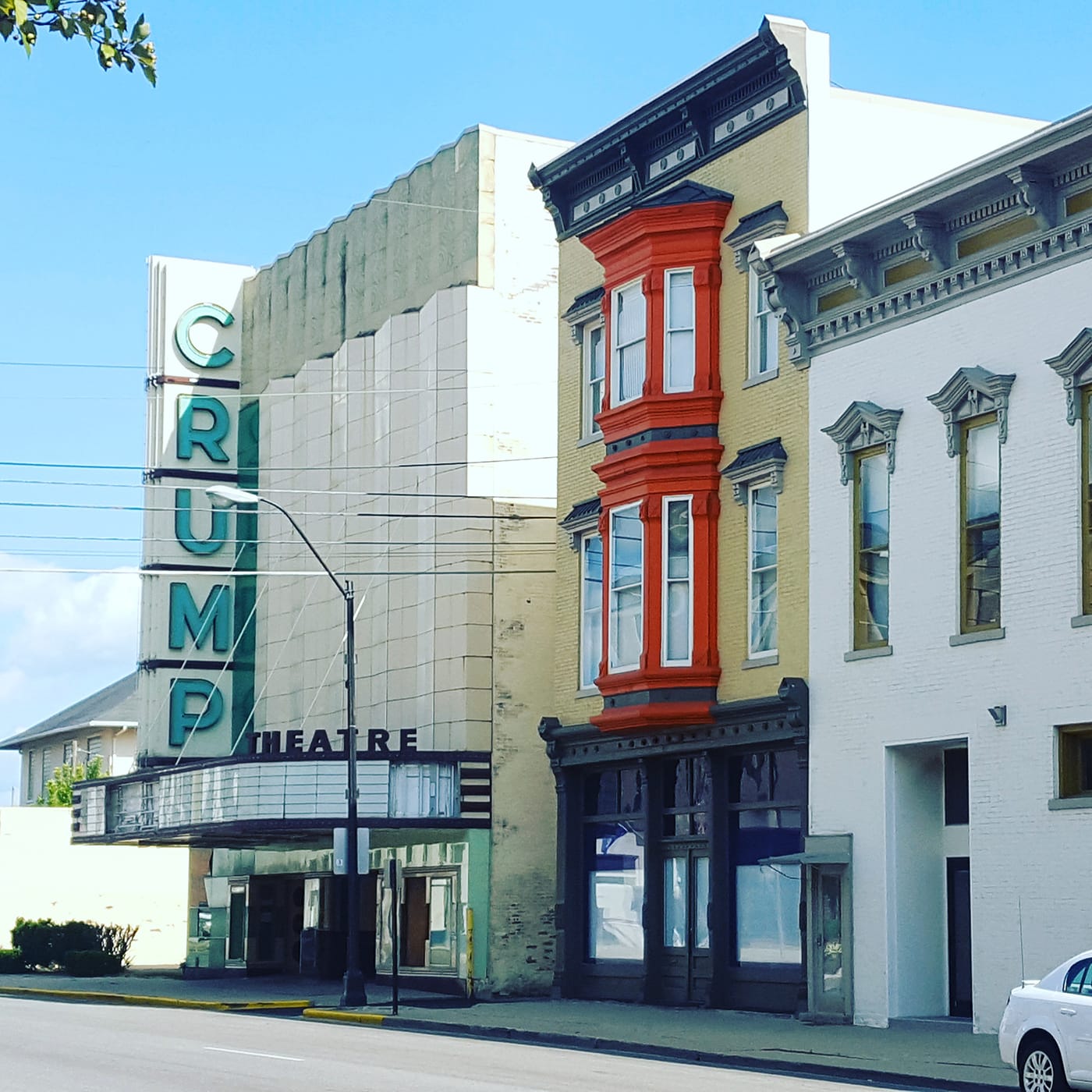 A charming scene, just off the main drag downtown; Alexander Girard completely redesigned the “drab” Victorian facades of Columbus’ entire main street with a bold 44-color paint scheme.