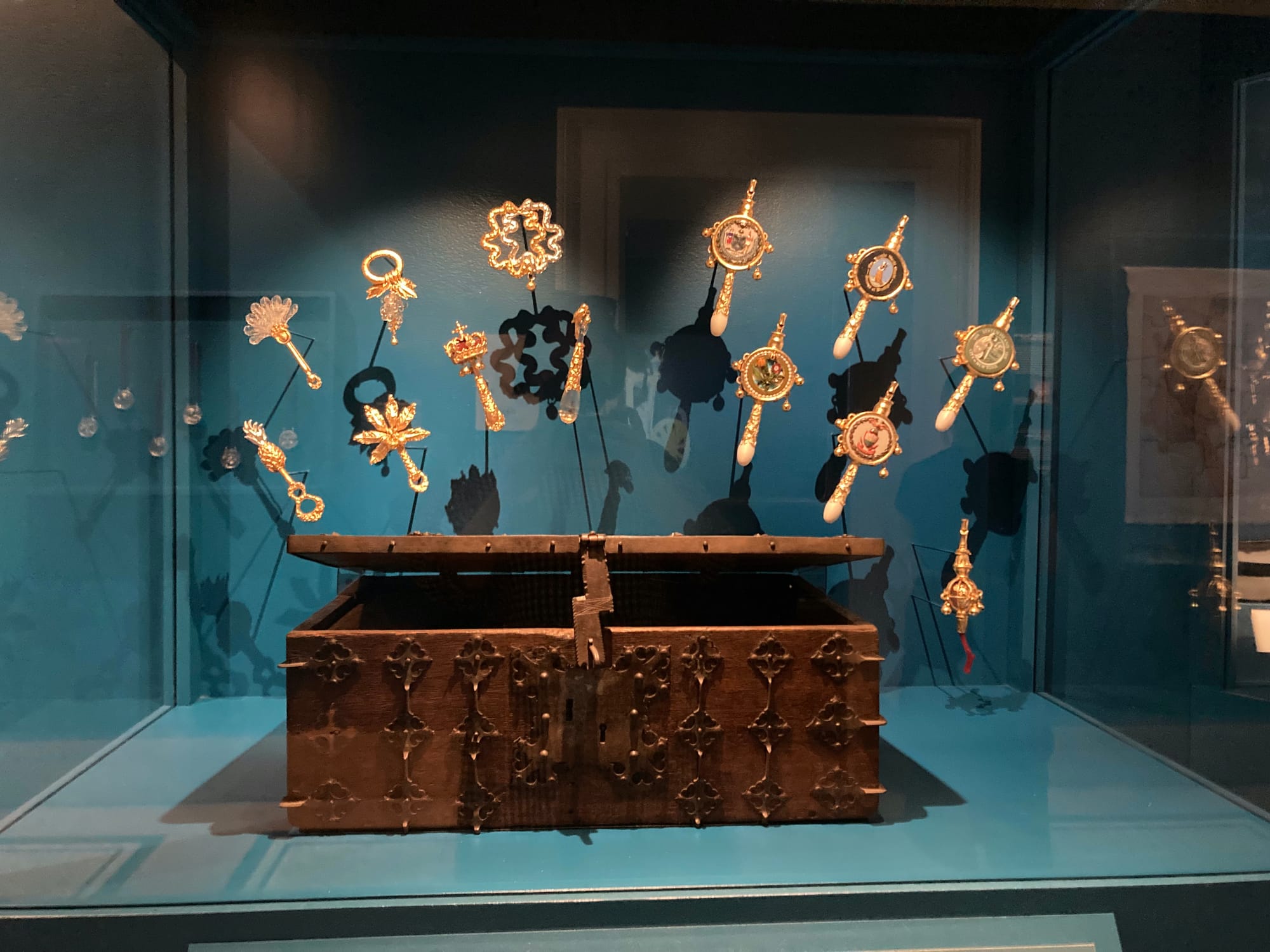 Progress so often comes hand in hand with exploitation. While Glow gestures toward that relationship, she stops short of examining the consequences of her own flirtation with AI tools, and the catastrophic environmental damage associated with their water consumption and carbon emissions. I found this work less compelling than the parade sculptures, or Glow’s gaudy gilt baby rattles, covered in the symbols of the Dutch West Indian Company, which serve as an allegory for the colonial histories we inherit. Her ability to bring attention to the more outlandish moments in New York’s colonial history is refreshing, and the prints and photographs from the NYHS collections displayed here are well chosen and interpreted. On the whole, it’s a clever show, but one that takes on a vast and messy history with a touch that is sometimes too light.