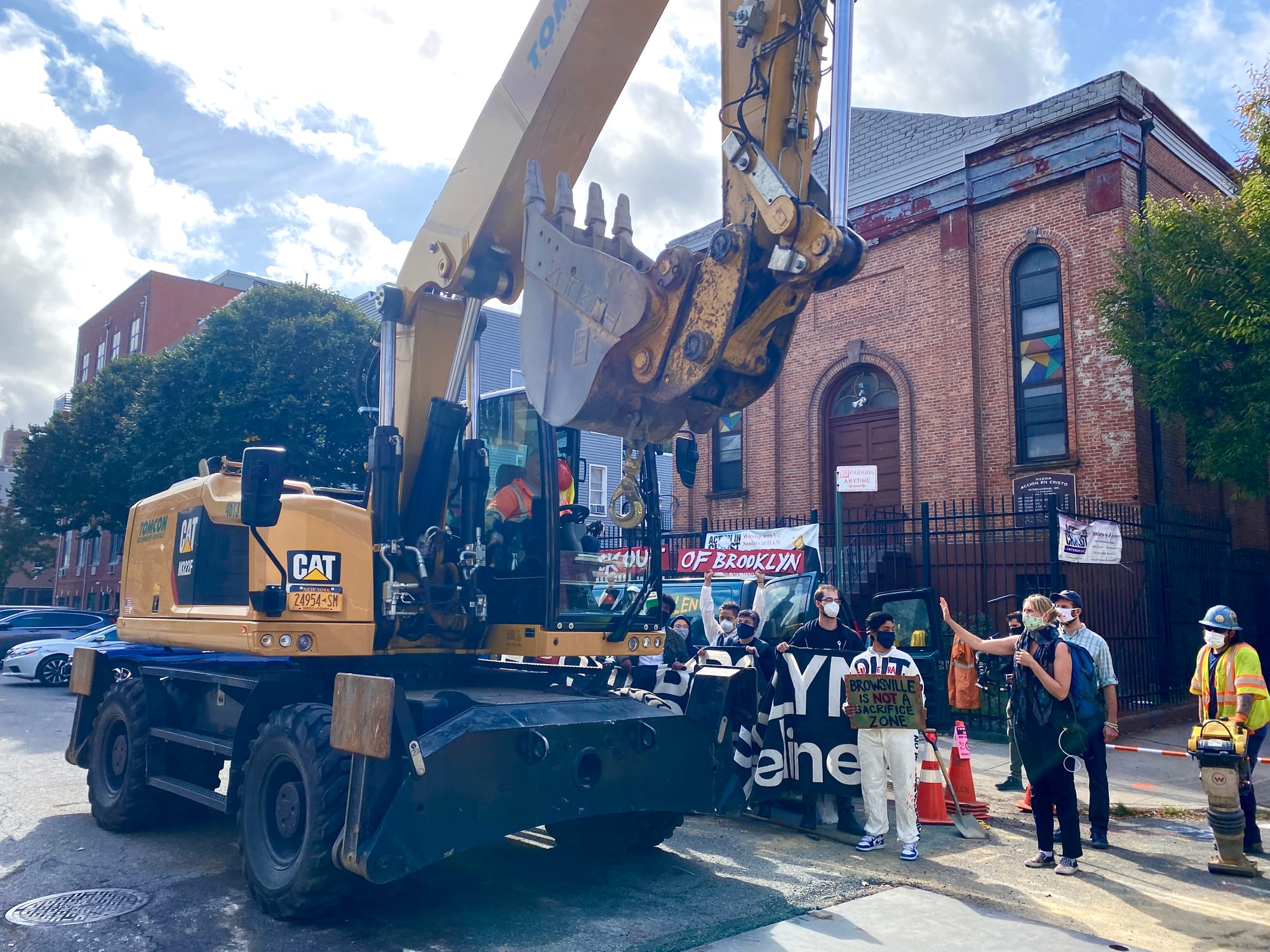 Meanwhile, the corner of Montrose and Manhatten Ave in South Williamsburg has become a protest flashpoint against the gas pipeline. Yesterday, October 19, a group of environmental and grassroots activists held the latest in a series of protests at the junction. A police unit arrived at the scene, but there were no arrests. The protesters later continued to the nearby corner of Leonard and Stagg Street, where they successfully disrupted a National Grid crew that was completing the fourth and penultimate stage of constructions for the pipeline.