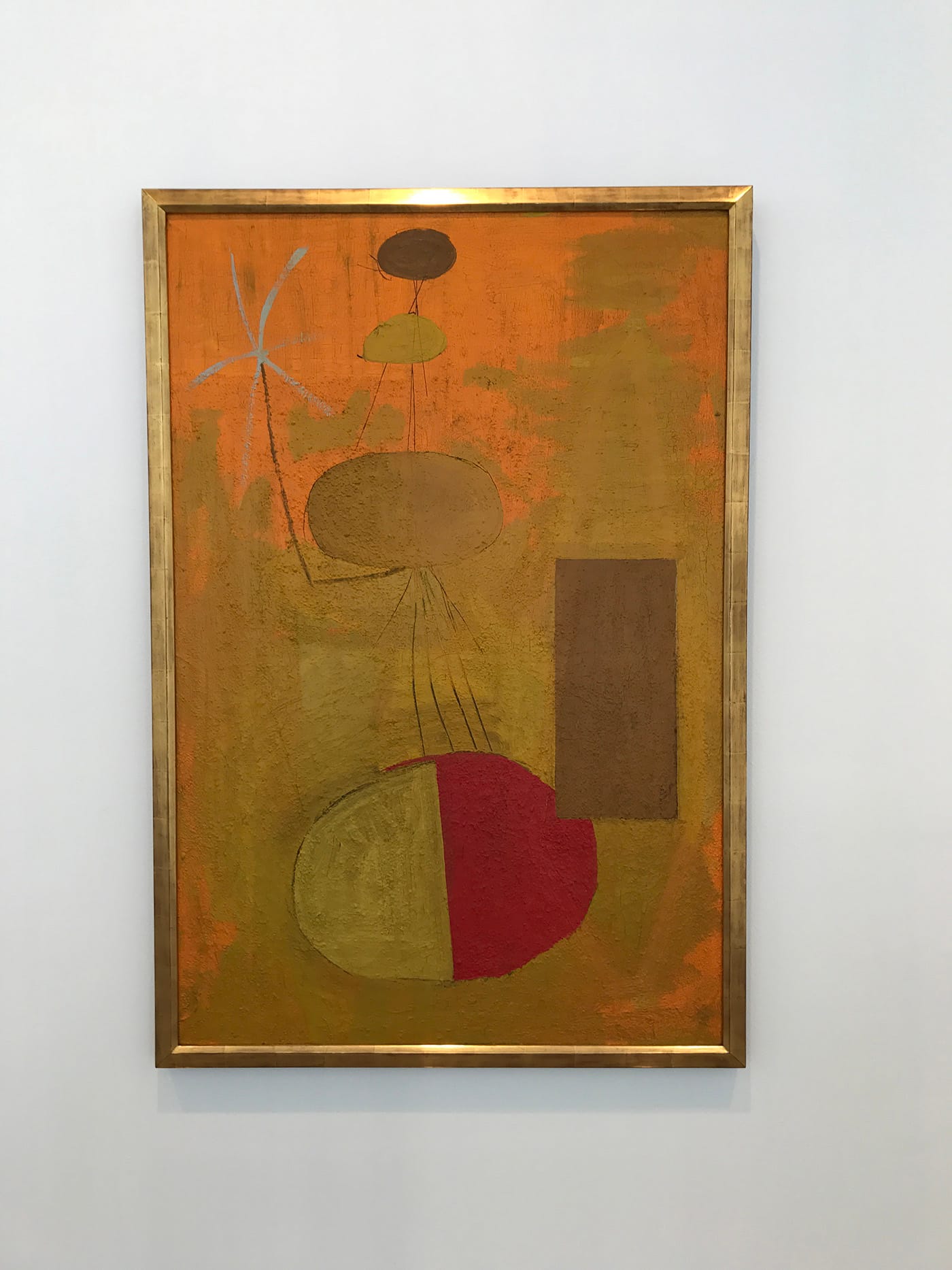 Motherwell is an artist whose work I have come to dread due to the ubiquity of unbalanced abstraction in the secondary market. So it was a pleasure, a relief, and a great joy to see a collection of works that actually show off his skill as a painter. “Orange Personage” is an abstract painting in yellow and orange that depicts a stick figure staring into the sun. (Is this painting evidence of Motherwell’s truly visionary thinking — a premonition of President Donald Trump staring into the eclipse?) The palette undulates gently, suggesting a hot summer evening in the woods or a strange circus act. Nearby, “La Belle Mexicaine (Maria)” recalls the paintings of Francis Bacon and Pablo Picasso, minus the anguish. It’s a simple painting of a woman who also resembles a chicken. It’s very strange and kind of wonderful, in part because, whether woman or chicken, the figure seems perfectly happy.