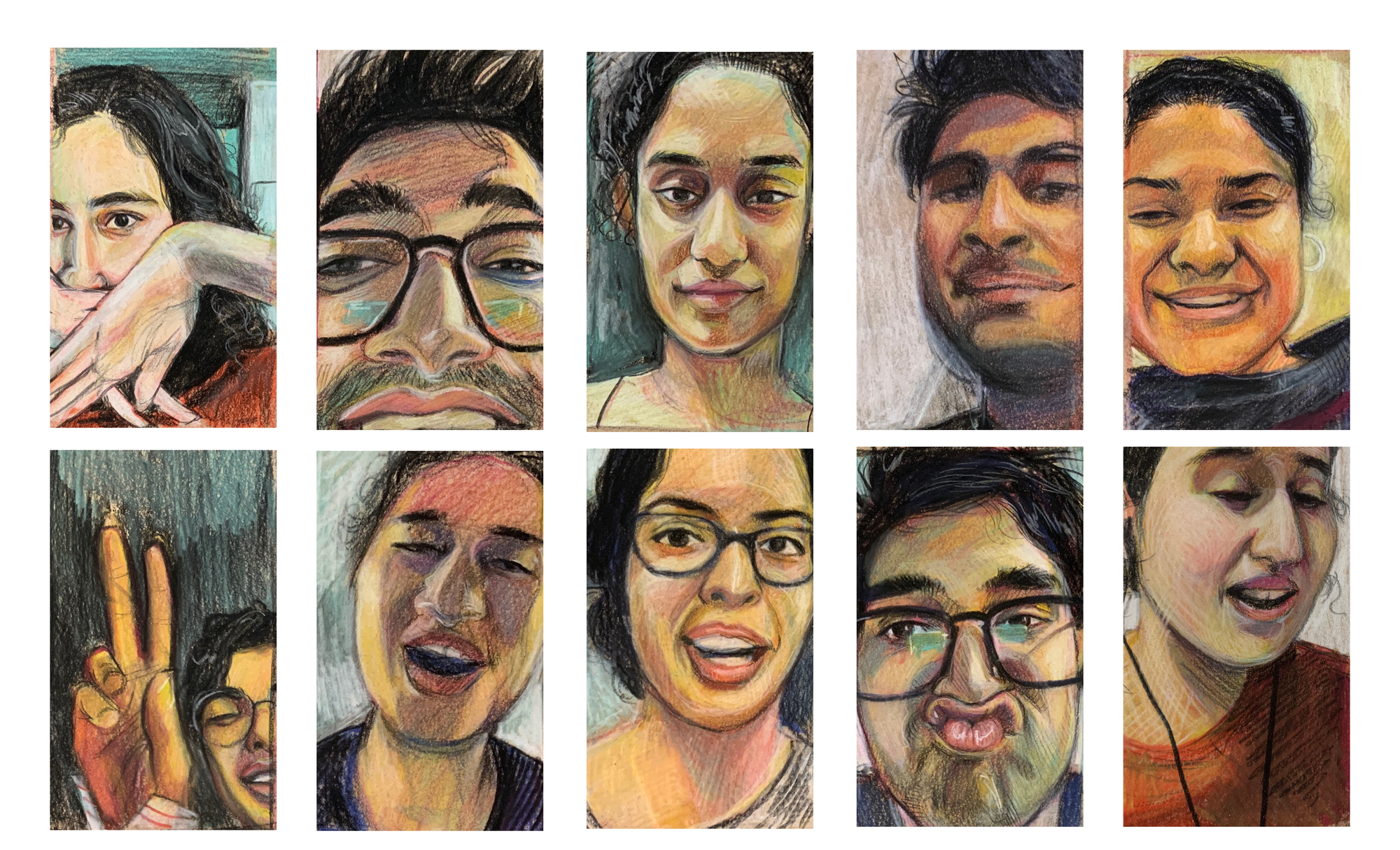 As people readjusted their routines, many used the opportunity to slow down, develop new skills, and cultivate their inner creativity. Painters like Nayanaa Kanodia, Deepikah R B, and Dhruvi Acharya started spending more time in front of their canvases; Priya Kuriyan became more familiar with her sketchbook; Tara Anand made FaceTime drawings of her friends’ faces; and Shreya Parasrampuria created a set of commemorative stamps for 2020 to honor the heroes fighting the pandemic.