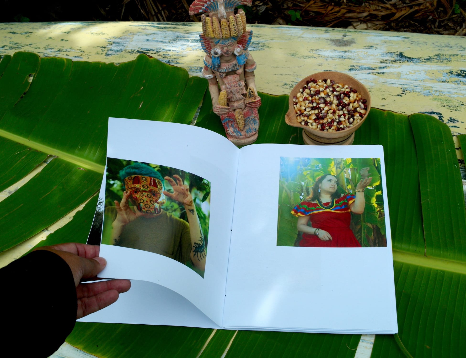 Morales lost all family albums when the Sandinistas turned her street in Managua, Nicaragua, into a refugee camp in 1979. Only one photo of her mother survived, which she included in the book. To make up for the absence of family photos, Goto suggested that Morales use illustrations and Indigenous recipes from her mother. At times, her search brought moments of irony. Looking for illustrations of the creator deities from the Nahuatl cosmovision, she looked up the Codex Borgia, one of the few surviving pre-Columbian painted manuscripts at the Vatican Library. Due to copyright, Morales had to write to the library director and ask for their permission to use the image of her own ancestors. “Why are the sacred manuscripts of Indigenous people at the Vatican?” she wondered aloud. “I see this as cultural colonialism.”