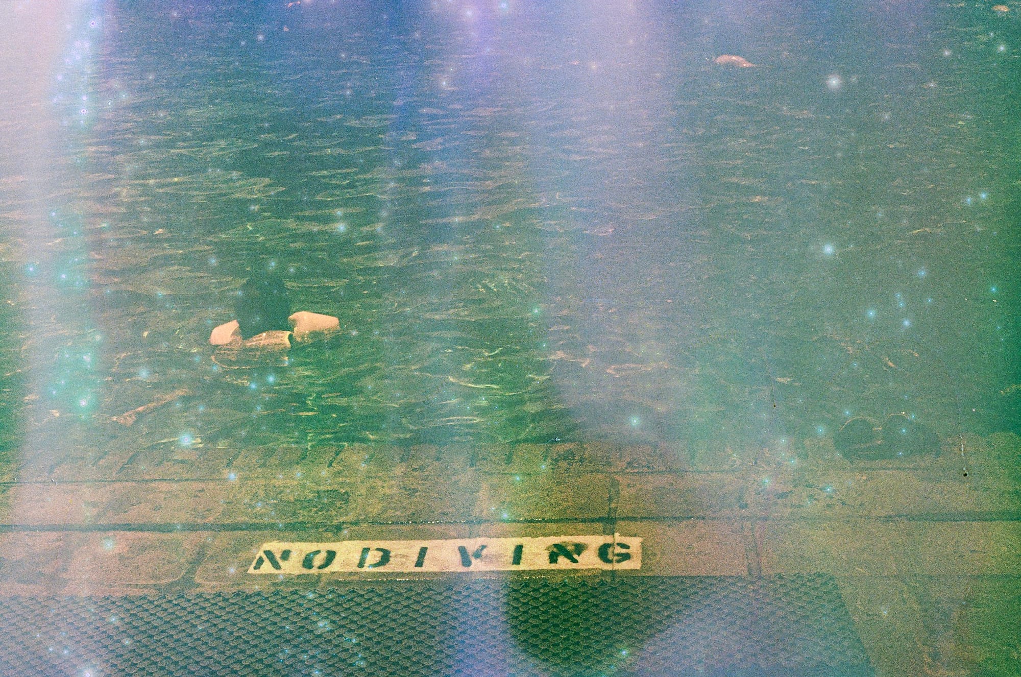 Melissa Guerrero, one of the workshop participants, brought hundreds of photographs from her archive. Her photobook Everyone in Florida Has a Pool (2023) expresses her frustrations as a Venezuelan immigrant who saw others enjoying what she could never afford. “During the [COVID-19] pandemic, we spent much time outside on the patio. We could never afford a house with a pool, but with an inflatable pool, plants, seashells I collected, and still-life objects, I created a world for my kids,” she told Hyperallergic. Documenting her disappointment with the American dream’s promises, Guerrero’s work also tells a story about divorce, the Catholic social stigma that comes with becoming a single mother, and three generations of Venezuelan women in her family who are also divorcees.