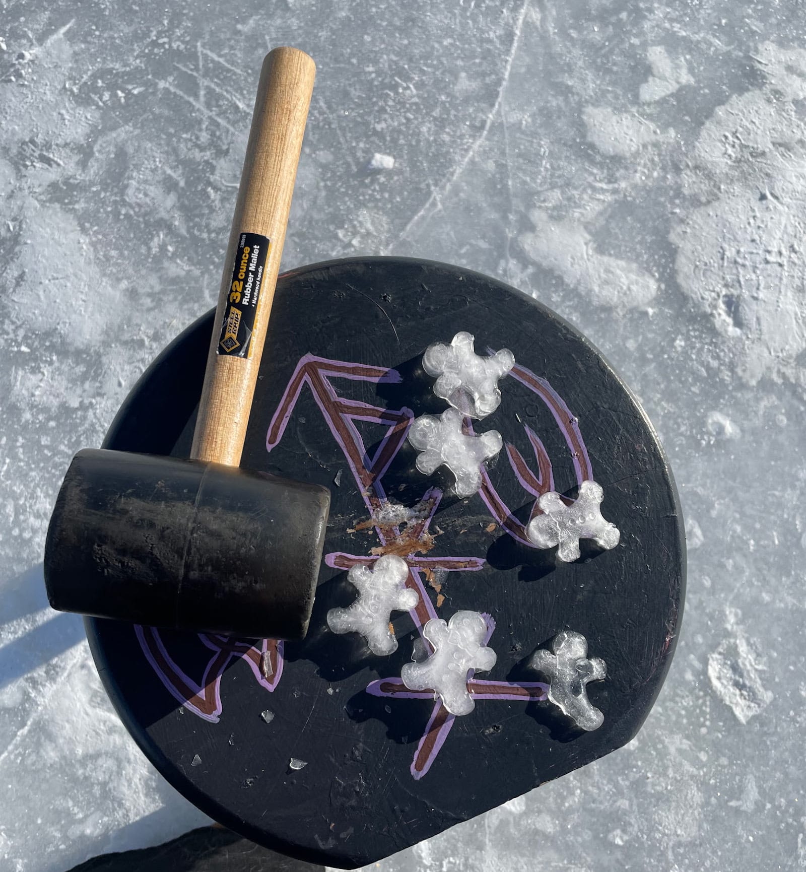 Visitors place the “ICE man” on a stool or the ice itself, and smash it with a hammer while others chant and hold space. The artists see it as a healthy way for people to express their anger and let go of things that no longer serve them.