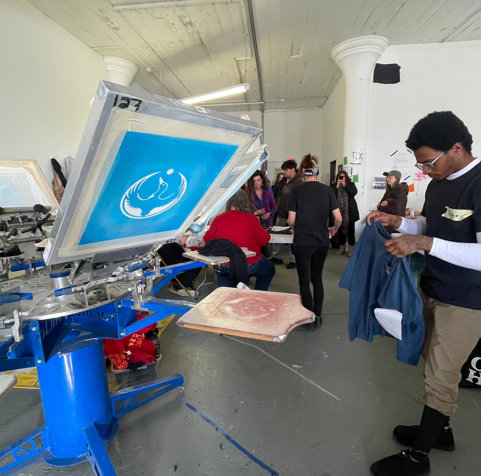 “I got very, very mad on the morning of January 8, and I said, ‘What do I have as a resource?’” Price, clad in a black muscle tank top with flowers braided into his hair, told Hyperallergic. “I have presses and I have ink, but I don’t have shirts. Bring me your shirts, free of charge.”